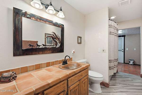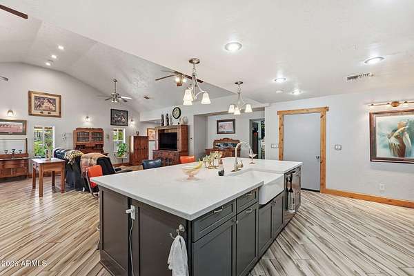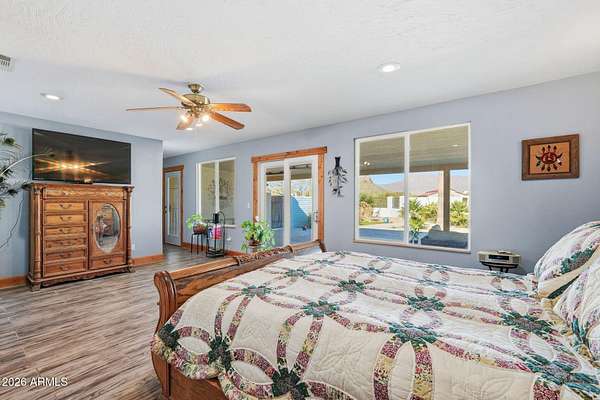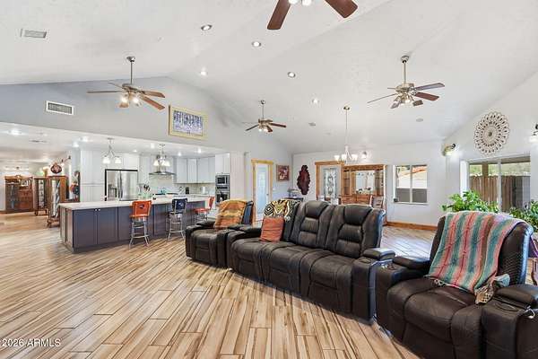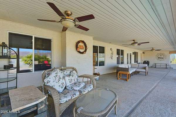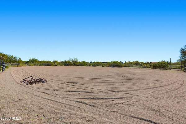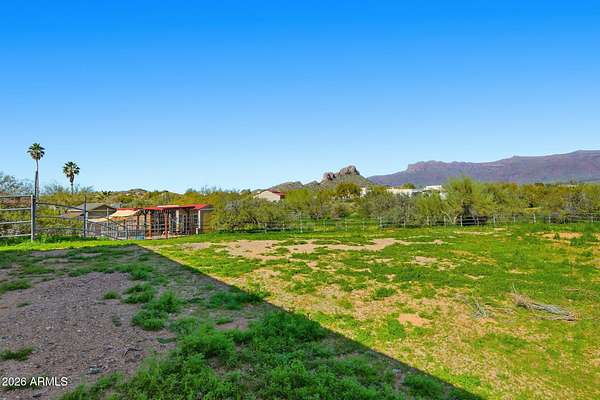 Set On Almost 4 Acres With Sweeping Panoramic Superstition Mountain Views w/ Heated Pool & Spa, This Horse Property Delivers The Full Equestrian Lifestyle. Built For 8+ Horses, The Setup Includes A Large Sand Arena, Lit And Covered Stalls, Paddock, Turnout, Chicken/Peacock Coop And A Round Pen. Riding Trails Connect Directly To The Property, Eliminating The Need For Any Trailering. The Single-Level Main Home Offers 2,650 Sq Ft, UPDATED & UPGRADED-New Roof 2025, Recently Added 32X32 Detached Garage, Gourmet Chef's Kitchen Featuring A Giant Quartz Island, Bright LED Lighting And A Walk-In Pantry. Open Great Room Concept. Formal Sunken Living Room With A Fireplace. Indoor Workshop. The Primary Suite Showcases An Updated Bathroom And Giant Walk-In Closet. The Full Guest House Is 1,024 Sq Ft.