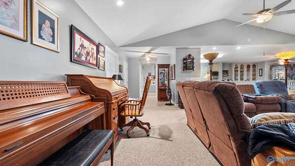 A beautiful single-level, custom 4 bed, 2.5 bath ranch style home for your lakefront living. The open floor plan features vaulted ceilings, cozy gas log fireplace, bay windows & custom cabinetry. The kitchen is a cook's dream w/ a eat-in bar, pantry, stainless appliances, & gas stove. Bedrooms are carpeted for comfort. The spacious master suite includes dual vanities, walk-in tile shower & walk-in closets. A two-car garage, & multiple storage spaces make daily living convenient. Step outside to enjoy the screened porch or open deck & fenced backyard. With a workshop, picnic pavilion & private dock for relaxing by the water, bring the family or make this your retirement home!