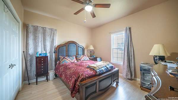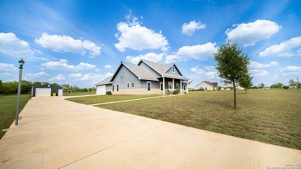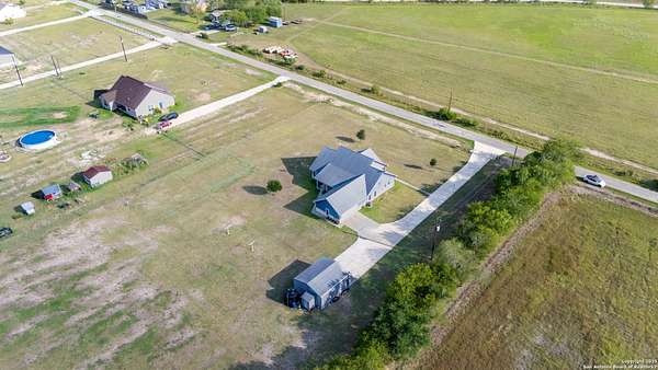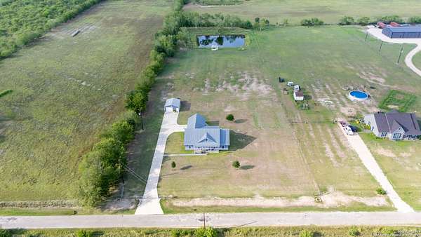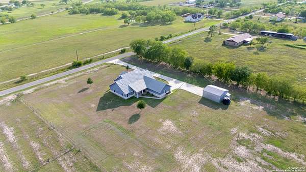 Experience country living at its finest with this beautiful home on 4 pristine acres in Natalia, just 25 miles from downtown San Antonio. With no restrictions, this property offers the perfect blend of privacy, versatility, and modern convenience. Built in 2017, the home is thoughtfully designed with energy efficiency in mind, featuring a durable standing seam metal roof and spray foam insulation throughout the exterior walls. Inside, the gourmet kitchen is a chef's dream, complete with custom 42-inch soft-close cabinetry, granite countertops, a spacious island, and abundant natural light. The master suite is a true retreat, highlighted by a luxurious jacuzzi tub and a walk-in shower with bench seating. Step outside and enjoy your own private pond-stocked with catfish, carp, and bass-perfect for fishing or relaxing on the dock. Additional features include a 20x24 workshop, a 3-car garage with built-in workbenches, a 2,550-gallon water storage tank, a manual sprinkler system, and a deep 135-foot well. For added convenience, the property also offers a 50-amp RV hookup, water softener, and a reverse osmosis filtration system in the kitchen. Ideally located just minutes from Lytle, Castroville, and Devine, and within the highly regarded East Medina County ISD, this property combines rural tranquility with easy access to nearby towns and city amenities.