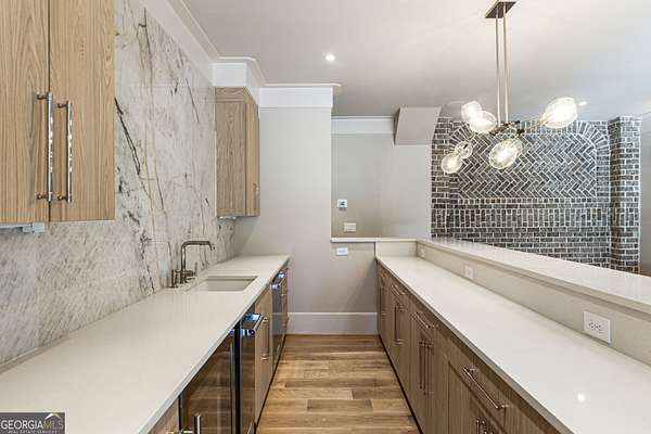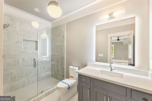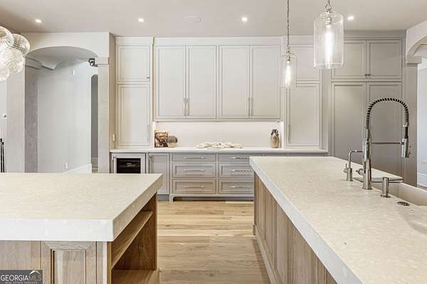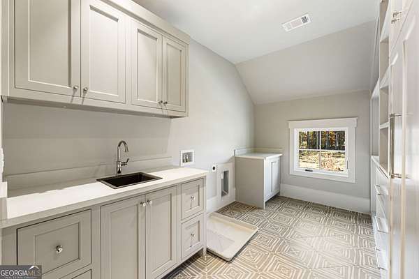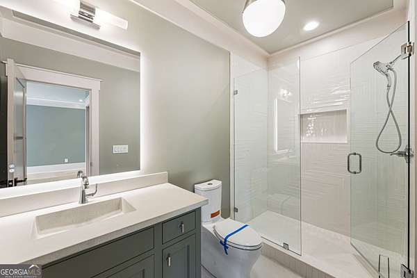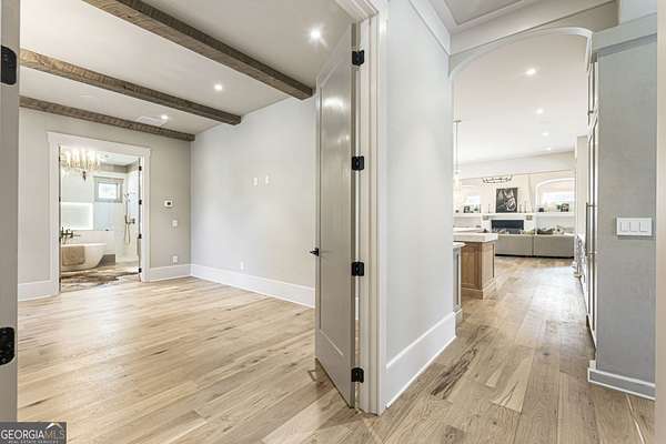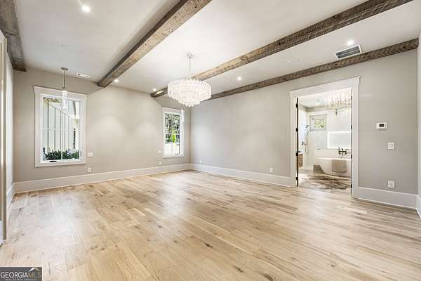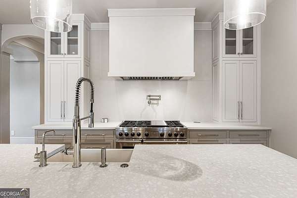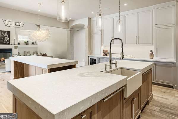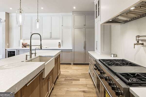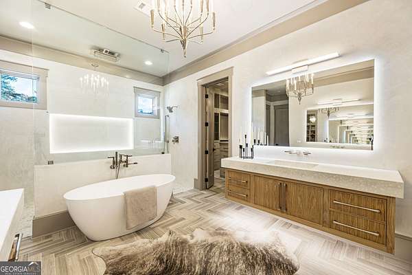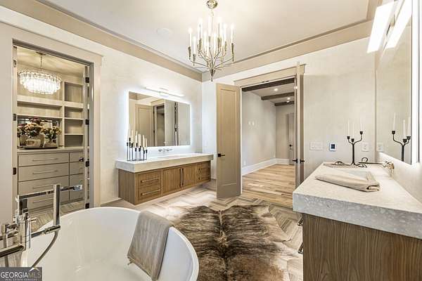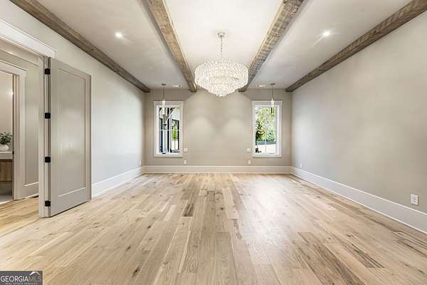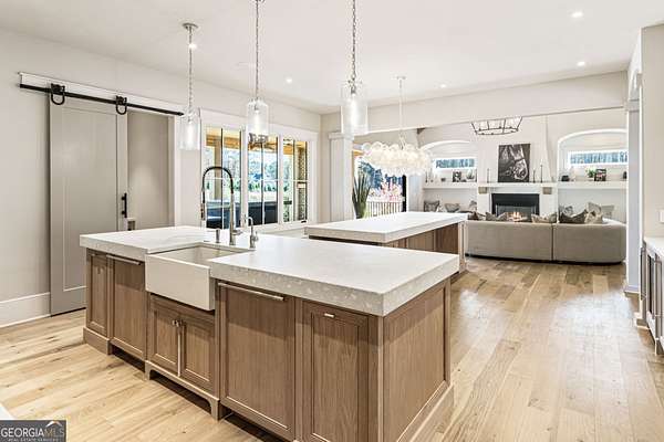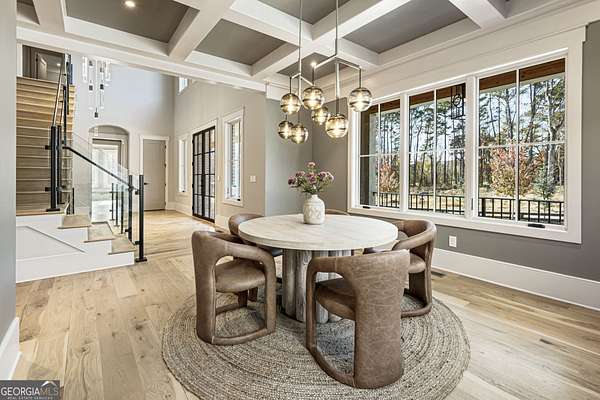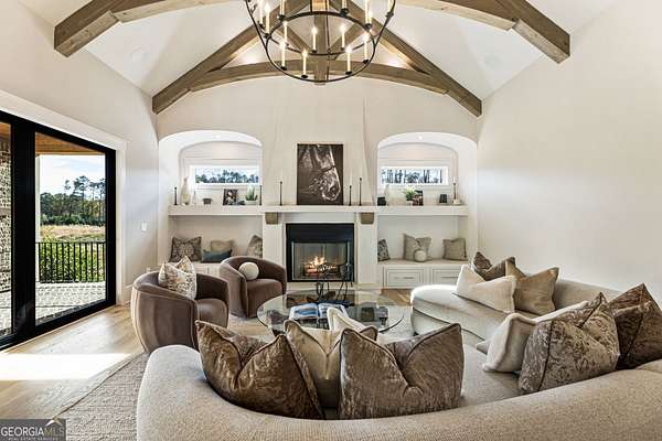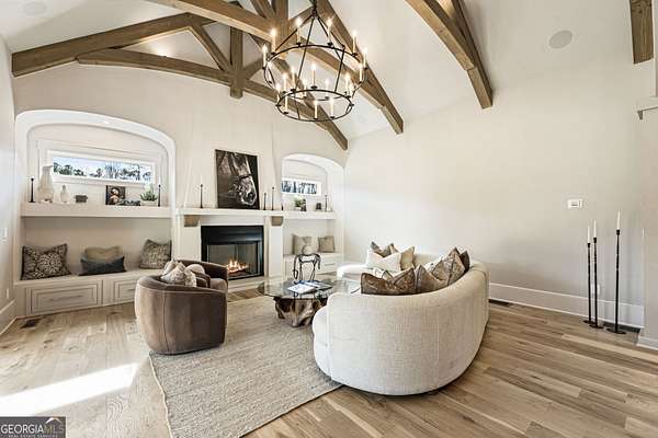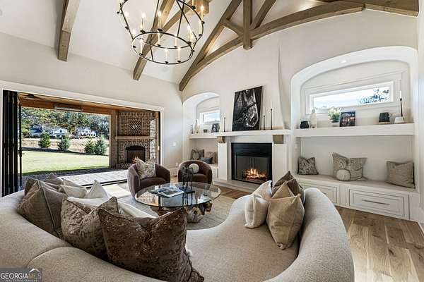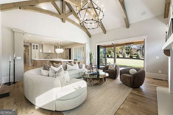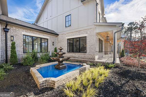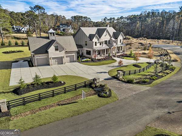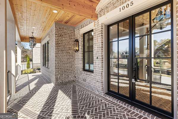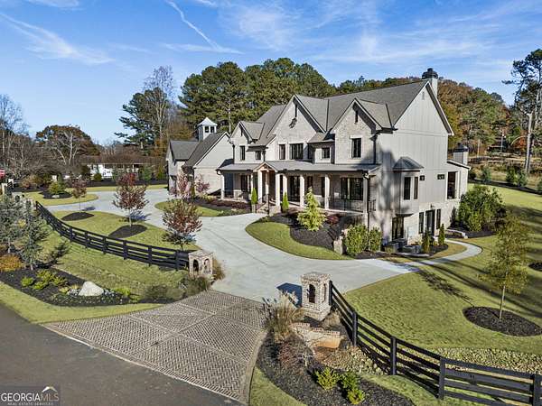 Welcome to a remarkable blend of craftsmanship, sophistication, and modern comfort. Arriving through one of two stately driveways, you're met by grand brick columns topped with glowing gas lanterns-a warm and distinguished introduction to the refined living that awaits. Thoughtfully designed and masterfully built, this new construction residence marries timeless architectural presence with cutting-edge technology and enduring materials. Every detail has been curated to elevate daily living, creating a home that feels both elegant and inviting. Nestled in the heart of Alpharetta's prestigious Cherokee County, the property offers the tranquility of a private enclave with effortless access to acclaimed schools-Avery, Creekland, Creekview, and The Haven Academy-along with premier dining, boutique shopping, and expansive parks. The exterior showcases striking brick construction and classic Craftsman styling. Inside, rich stain-in-place hardwoods, handcrafted cabinetry, and high-performance concrete countertops with integrated sinks set the tone for exceptional quality. The chef's kitchen and outdoor culinary space feature professional Wolf and Sub-Zero appliances, perfect for gatherings or intimate evenings at home. A 1,000-sq-ft covered patio extends the living space, finished with herringbone brickwork, built-in heaters, and generous open-air seating for year-round enjoyment. The primary suite is a serene retreat with heated tile floors and a boutique-inspired custom closet. This smart home offers full mobile control of HVAC, lighting, surround sound, and Lutron window shades, along with EV-ready wiring. The F-Wave premium synthetic roof carries a lifetime warranty and provides top-tier protection from high winds, hail, and fire. Jeld-Wen casement windows include a 10-year frame and 20-year glass warranty. With nearly 10,000 sq ft under roof-including garage and covered porches-the home offers an impressive scale and thoughtful functionality. The backyard is approved for a future in-ground pool. Set within a private collection of just seven curated new homes (lots not sold individually), this residence offers rare exclusivity. Once all seven homes are finished the homeowners are welcome to install a Private Gate and the Main Entrance for further privacy.