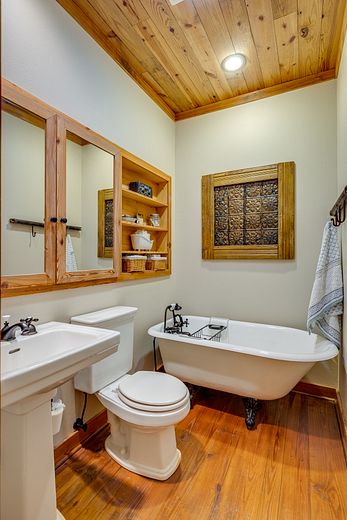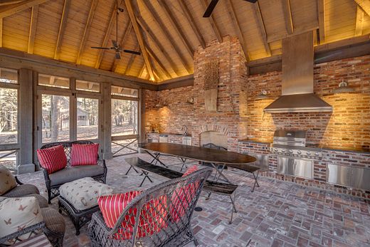 Escape to a world of timeless elegance and modern convenience at this breathtaking cabin on almost 23 acres of wooded land. Built in 2002, this 1,169 HSQFT cabin boasts two bedrooms, two baths, a wood-burning fireplace, and a wealth of luxurious upgrades. From the heart of pine Carlisle flooring with exposed antique nail heads to the custom Louisiana cypress kitchen cabinets, no detail has been overlooked in creating a warm and inviting atmosphere. Cook in style with the top-notch Sub-Zero Refrigerator/freezer and Fisher-Paykel dishwasher drawer, or get dinner done fast with the GE Advantium Speedcook 5-in-1 oven. Retreat to the serene master bedroom with a custom built-in cabinet, drawers, and armoire. Soak in the beauty of the hand-made period lighting fixtures and Newport Brass plumbing fixtures. If the cabin and land were not enough, then you are sure to enjoy the 567 SQFT pavilion designed by Jeffrey Carbo, featuring reclaimed brick, beams, a fireplace, a built-in grill, sink, and mini-fridge, making it the perfect place for entertaining guests or simply enjoying a quiet evening watching the deer walk along the creek. This secluded gem offers the ultimate privacy yet is conveniently located just a short drive from town. Make this one-of-a-kind cabin your private oasis. Schedule your private showing today!
