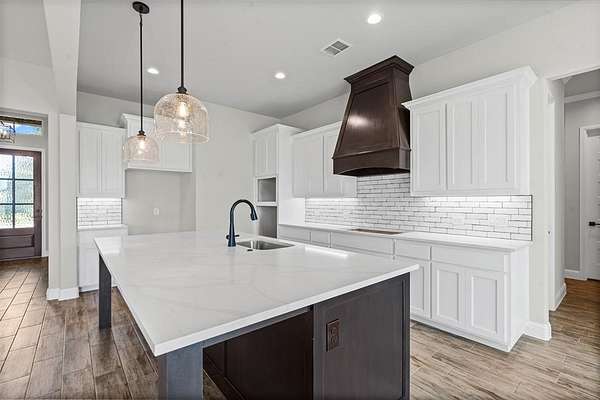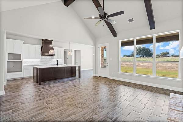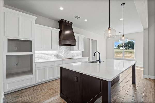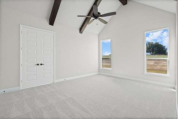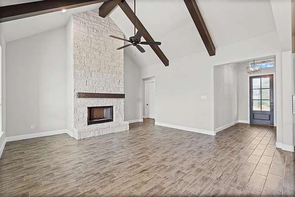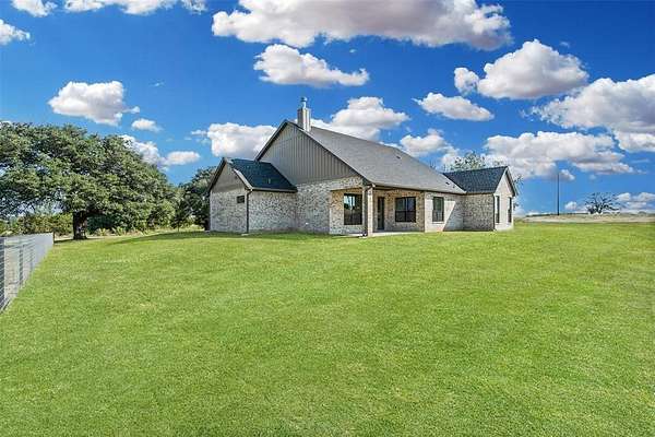 Welcome to this exceptional 2-acre property in Peaster ISD set back from the road in a canopy of mature trees, this thoughtfully designed living space is functional and family friendly with endless possibilities. You will love how seamlessly this home blends modern luxury with timeless style, featuring soaring vaulted ceilings with exposed beams, an inviting floor to ceiling stone fireplace, and abundant natural light throughout. The chef's kitchen is a showstopper with quartz countertops, designer tile backsplash, staineless steel appliances, a walk-in pantry, and a spacious island perfect for hosting family and friends. The open floor plan flows into a warm and welcoming living area, creating an ideal space for entertaining. A dedicated home office provides privacy for work or study, while the mudroom adds convenience and functionality. The primary suite is a true retreat with a spa-like bath featuring a soaking tub, walk-in shower, and generous closet space and connects to the laundry room for added convenience. Secondary split bedrooms feature walk in closets & ample space. Step outside to enjoy your acreage, where mature trees and wide-open spaces offer endless possibilities for relaxation, play, or future outdoor living additions. Don't miss out on this wonderful opportunity!