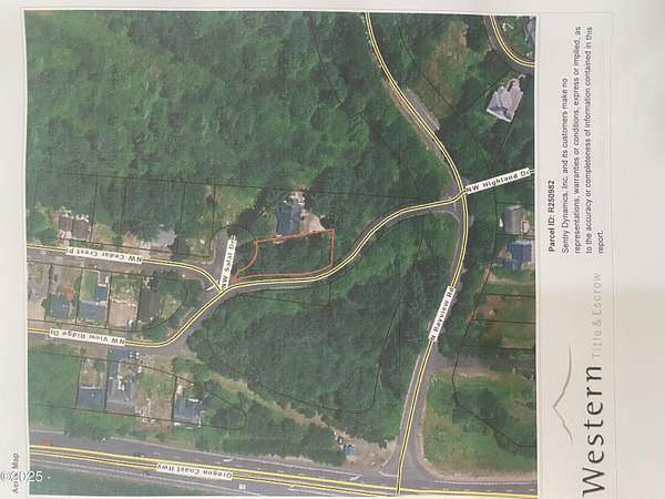Heading North of the Alsea Bridge, Turn Right onto Bay View Rd, turn left onto NW View Ridge Rd. Property on the corner of Salal and View Ridge.