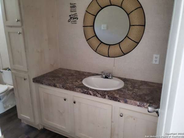 Exclusive Agency Listing. All agents may advertise this property with exceptions of MLS and yard signs. HUD homes are sold "as is". HUD Case #514-204420. Gated-country living on 2.21 acres! 3/2 manufactured home with an open living/dining layout, split primary suite, and a spacious kitchen. Expansive, usable land offers room for a garden, workshop, or extra parking. Enjoy privacy, space, and easy access to San Antonio conveniences. No representation is made to information provided including taxes, sqft, schools, features, etc. Buyer must verify all information.