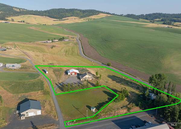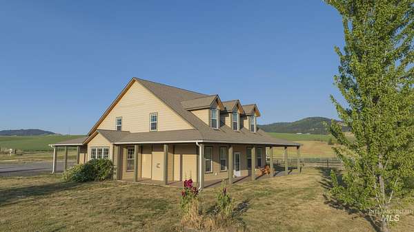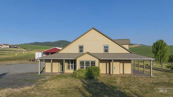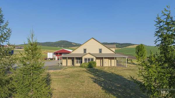 Find quiet country living 7 minutes outside Moscow with this 5 bed, 3 bath country home on nearly 5 acres. Enjoy the big wraparound country porch, a 36 X 36 barn/shop, and open kitchen with new quartz counters and lots of seating for friends and family. Also to love is the zero-maintenance concrete floors with hydronic heat for amazing efficiency and comfort. In the living room, there's plenty of seating in front of the gas fireplace along with 3 bedrooms on the main floor. The main floor master suite has a walk-in closet, big floor-to-ceiling tiled walk-in shower, and an extra deep soaker tub. Upstairs are 2 more big bedrooms and a great room with tall cathedral ceilings, along with a 3/4 bath. There's a mud/laundry/mechanical room with lots of space & a dog-washing station. Outside is set up with a barn/shop with concrete floor, stalls, & fencing for your stock and an additional 2 car shop/garage on the corner of the property. There's much too to mention, come get it while you can!