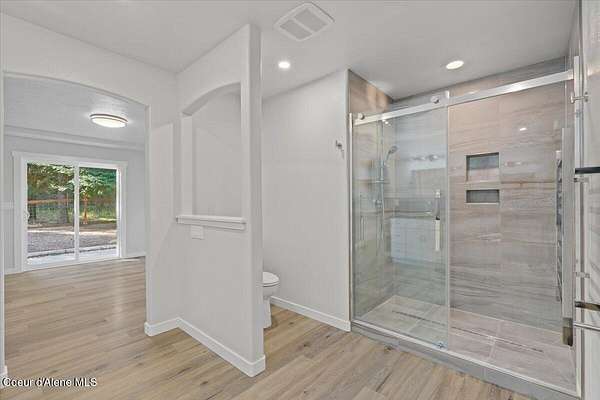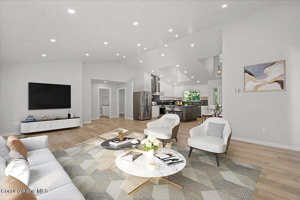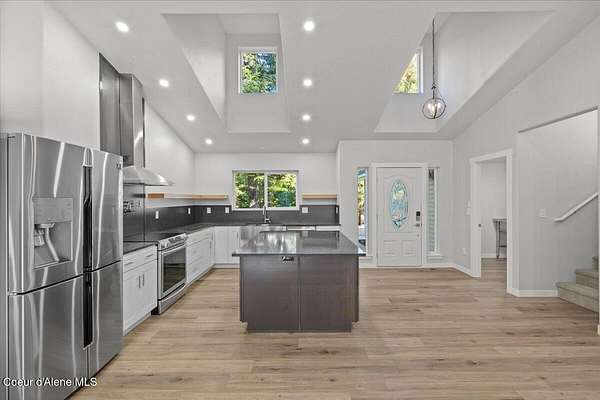 No detail was missed in this beautiful, fully remodeled, open concept home on 4.35 acres just 30 minutes from CDA! You will enjoy many upgrades including a new gas furnace/AC, tankless hot water system, full-house descaling system, high-end plumbing fixtures throughout the house, newer SS appliances in the beautifully remodeled kitchen, powder coated backsplash in kitchen, beautiful new shower in master bath with heated towel rack, dimmable lighting thru-out, new flooring thru-out, solid wood interior doors, Intermax Fiber Internet, and more! This 3 bed, 2 bath home also features a bonus room above the garage and a brand new 40x60 Shop with 20x20 loft. The shop has rough-in plumbing and a gas hookup as well. Once you're finished working in the shop, relax in the included Marquis hot tub! Lots of trees throughout the property offer privacy and a country feel, yet the property is easily accessed with paved roads and just 30 minutes to CDA or Sandpoint!