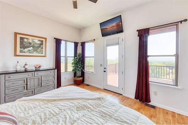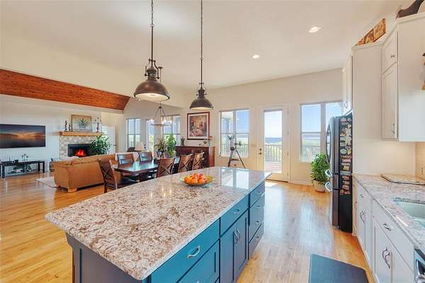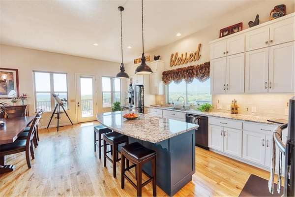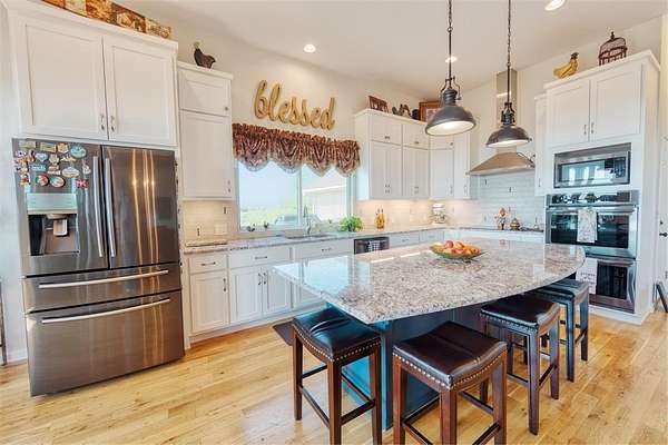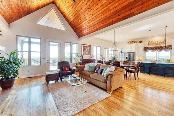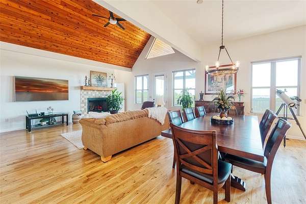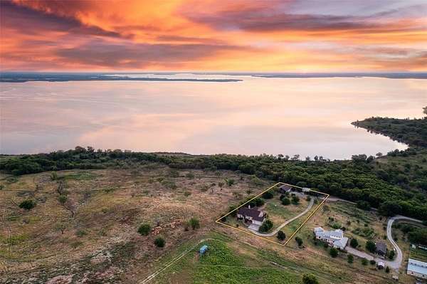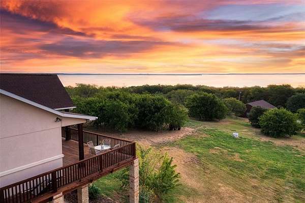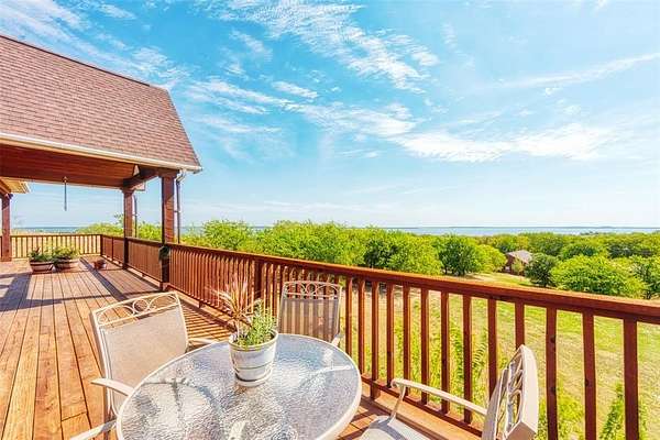 Take in breathtaking 180-degree views of Lake Ray Roberts with this exceptional 1.9 ac property offering over 3,800 square feet of living space, seamlessly integrating indoor & outdoor living to take full advantage of the stunning views. Inside discover elegant wood floors, a grand kitchen featuring custom cabinets & granite countertops. An open floor plan with a living area featuring expansive windows framing captivating views of Lake Ray Roberts. The expansive balcony is ideal for entertaining and picturesque views. The primary suite showcases an ensuite bath, a multilevel closet, walk-in shower, & dual vanities with granite counters. The lower level, has two additional ensuite bedrooms with private baths, kitchenette, a craft room, offering a versatile living space. The Estate also features a 1,400-square-foot guest house, a 500-square-foot garage apartment, and six covered garage spaces. A meandering path leads from your fenced yard directly to the shores of Lake Ray Roberts.