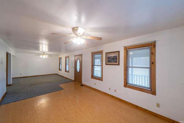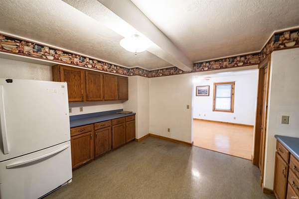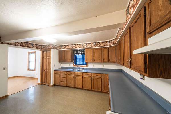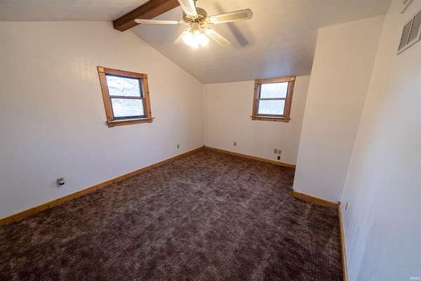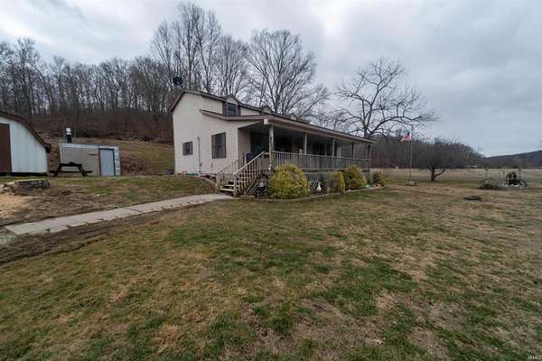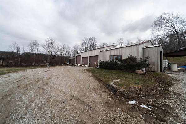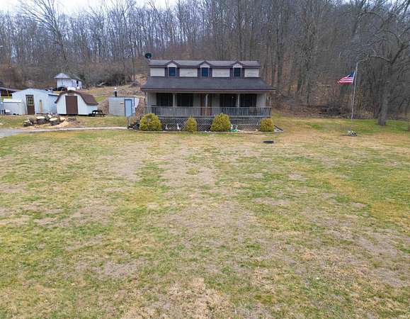 Located on 6.08 acres, this 4-bedroom, 1-bath home offers functional living space and multiple exterior uses. The property includes a fully stocked pond, permeant tree stand, built-in storm shelter, and five outbuildings providing ample storage and outdoor recreation. The home features a large kitchen with all appliances included. Utilities are total electric, with the addition of an outdoor wood furnace for supplemental heat. A detached 5-car garage includes electric service and a bathroom, offering additional workspace or storage options. The acreage provides open space and a rural setting with room for a variety of potential uses. A small creek running along the east side of the property makes this a very peaceful home!! Home Warranty Included