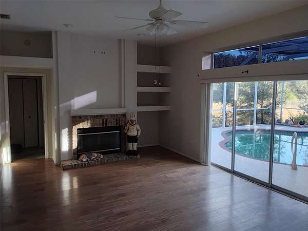 Property is being sold AS-IS. Located along Little Road, this approximately 3,172 square foot residence sits on 1.94 acres and offers 4 bedrooms, 3 full bathrooms, a bonus area, and a 3-car garage, providing a flexible layout suitable for a variety of potential uses. The property includes a screen-enclosed saltwater pool with solar pool heating. The nearly two-acre lot features mature trees and a wooded setting, offering privacy and a natural backdrop. The home features an exceptionally large bonus room with a stand-alone A/C system, wet bar, and direct exterior access, creating a versatile space adaptable to multiple uses. The property has been long held and will benefit from updating, depending on the buyer's intended use. Notable updates include a roof replaced in April 2018, A/C replaced in June 2020, and a water heater replaced in December 2025.