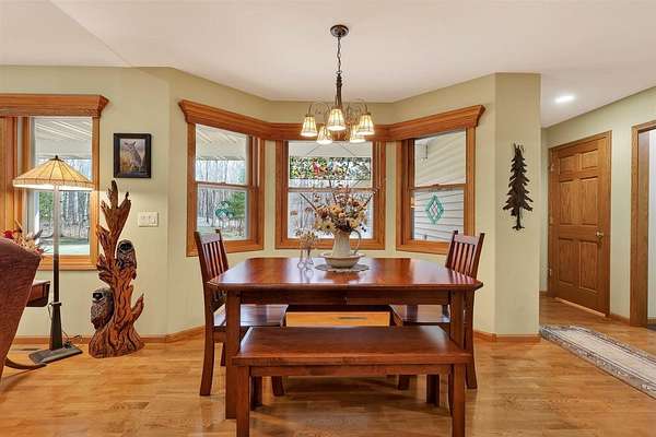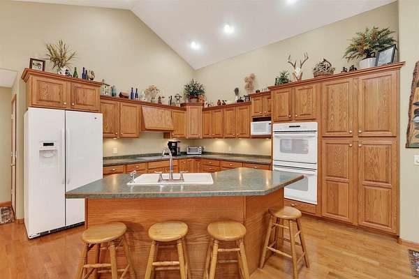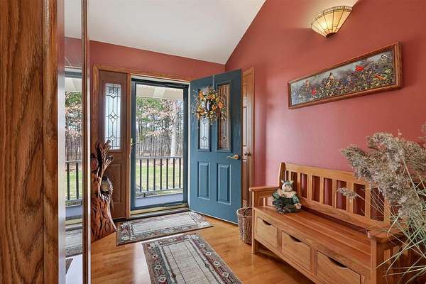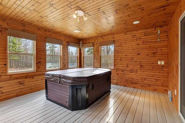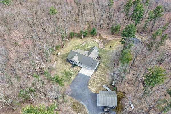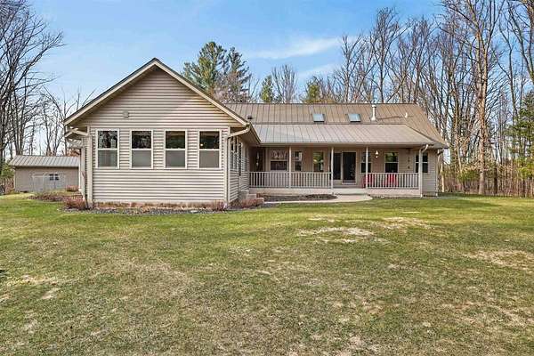 Experience the perfect blend of luxury and functionality in this exceptionally maintained home, situated on over 38 serene, wooded acres. From the moment you arrive, the level of care is evident; this property is truly in "turn-key" condition, offering a pristine environment inside and out. Heart of the Home: An expansive, open-concept main living area features soaring vaulted ceilings, creating a bright and airy atmosphere. The massive chef’s kitchen is a focal point, anchored by a large center island—perfect for hosting and daily life. Primary Suite Sanctuary: Retreat to the primary suite, which boasts a spacious walk-in closet and a private ensuite bath featuring a classic clawfoot tub for ultimate relaxation, or you can relax in your hot tub on the private 3 season porch. Smart Layout: The split-bedroom design ensures maximum privacy, while a dedicated main-floor private office provides the ideal quiet space for remote work or study. Functional Luxury: A large laundry room offers abundant cabinetry for organization, and the full basement includes a finished full bath and an egress window, providing a clean slate for future expansion. Attached Garage: 3-stall, fully heated space for year-round comfort. Detached Shop: A massive 24'x28' detached garage featuring 9-foot sidewalls, perfect for equipment, a workshop, or extra storage. The Grounds: Enjoy views of your private forest from the charming front and back porches. Gardeners' Dream: A dedicated area with fenced-in raised garden beds is ready for your seasonal plantings. The Land: Over 38 acres of wooded beauty offer endless opportunities for hiking, recreation, or simply enjoying the peace of nature. Clean enough to eat off the floors and ready for its next chapter—schedule your private tour today to witness this incredible estate in person.