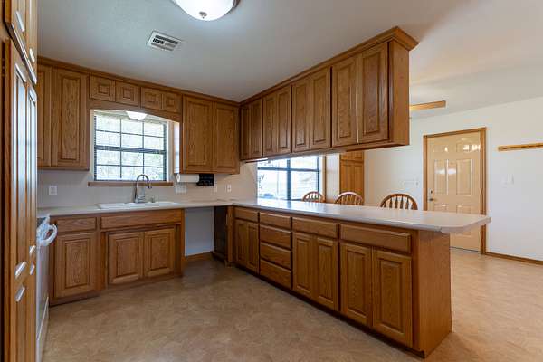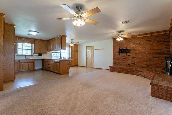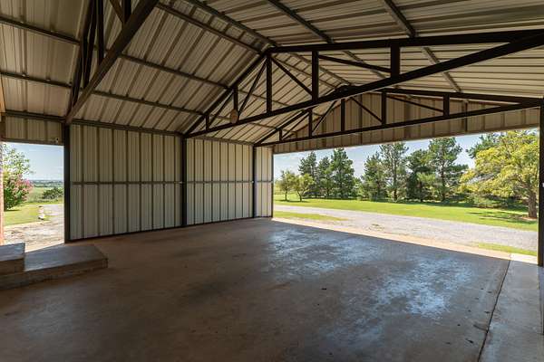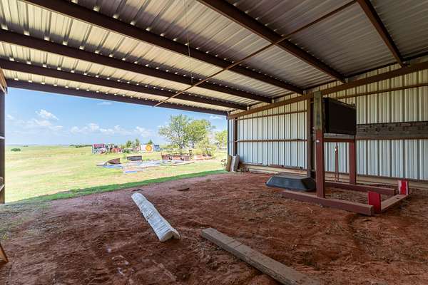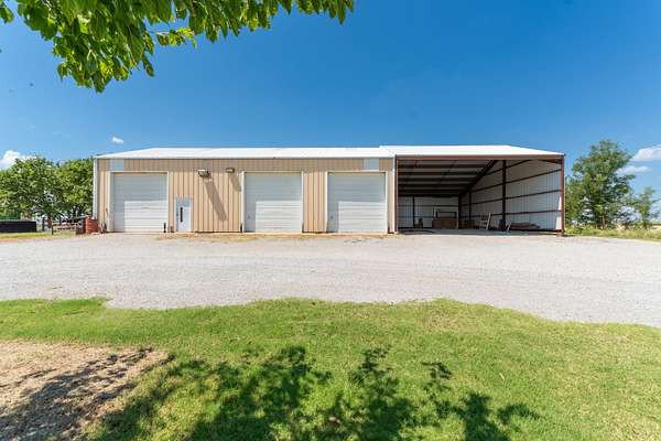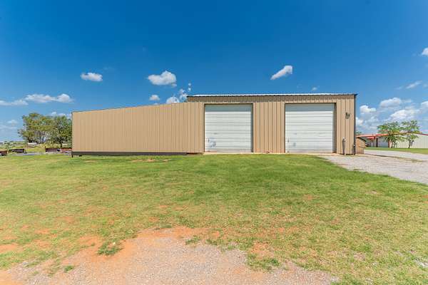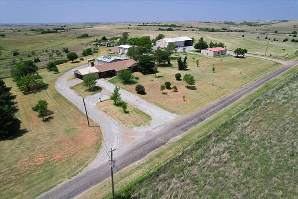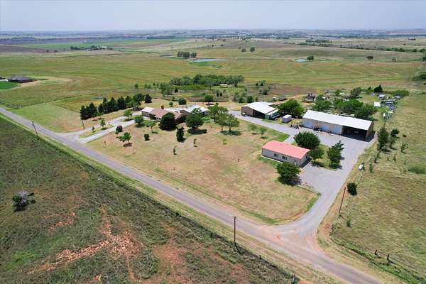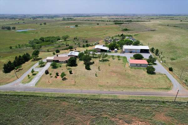 Rural Arapaho, OK Home & Acreage for Sale. This 10-acre property is surrounded by open grassland and features mature trees. The well-maintained 3-bedroom, 2-bath brick home includes an enclosed front porch with direct access to a storm shelter, two spacious living areas perfect for entertaining, and a 14' x 30' covered back patio for outdoor relaxation. The home was remodeled in 2007, with further upgrades including Geo Thermal HVAC and attic insulation added in 2019, a new heat pump water heater in 2021, and a new roof installed in 2024. A 24' x 24' carport and a Generac whole-house generator add convenience and reliability. Additional improvements include a 24' x 26' metal garage with an 18' wide x 7' tall overhead door and a 12' x 30' enclosed room with sliding glass doors on the north, west, and east sides. Outbuildings on the property include a 24' x 40' metal building with two 12' x 12' overhead doors, an attached 23' x 40' lean-to on the north side, a 40'storage container, and a 30' x30' equipment shed attached to the west side, as well as, a 40' x 60' metal building featuring a bathroom, in-floor automotive lift, two walk-through doors, three 12' x 12' garage doors, 14' side walls, and a large sliding door on the south end. A 33' x50' lean-to is attached to the north side, providing even more covered space. This Custer County, OK property also includes a 30' x 50' climate-controlled shop equipped with heating and cooling, a small kitchenette, a bathroom, a storage room, and a 15' overhead garage door. The space is designed for easy conversion into an efficiency home. This Arapaho, OK property is tailor-made for a home-based business, commercial operation, or anyone needing workspace with substantial flexibility and utility. This Western Oklahoma property offers a rare combination of living comfort, storage, and functionality--ideal for anyone seeking a spacious and versatile homestead.