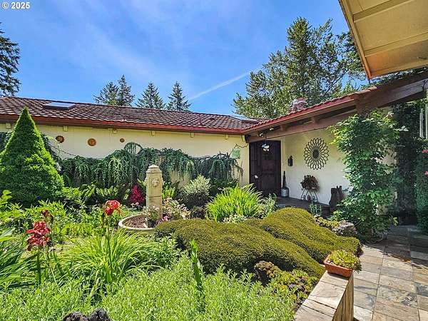 Architect-designed home by noted Northwest architect Dan Reece, built in 1953 and tucked away in Portland's desirable West Portland Park neighborhood. This one-of-a-kind residence sits on 1.61 acres of layered gardens, fruit trees, and peaceful outdoor space. South-facing territorial views offer the feel of a private retreat, just minutes from I-5, Hwy 217, Tryon Creek State Natural Area, and the shops and restaurants of Multnomah Village. Formerly the residence of Disney voice actor Dallas McKennon, the home blends creative legacy with timeless design. The flexible layout includes approx. 2722 sq ft, 3 bedrooms, 2.1 bathrooms, and a main-level primary suite. A recently updated kitchen opens to the dining and living areas, with unique character and warmth throughout. Lower level includes 2 bedrooms, full bath, mud room, laundry room and bonus living area. The former barn has been transformed into a spacious hobby room with running water and extensive electrical access-ideal for art, gardening, or projects.An attached greenhouse provides year-round light and versatile space for growing or relaxing. Raised beds, private patios, and walkways invite exploration and create a serene connection with nature. Tucked back at end of street leads to the home, offering seclusion and ample parking.This is not your typical home-it's a rare blend of architecture, history, and setting in one of SW Portland's most peaceful, convenient locations!