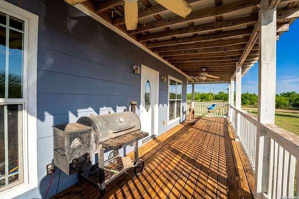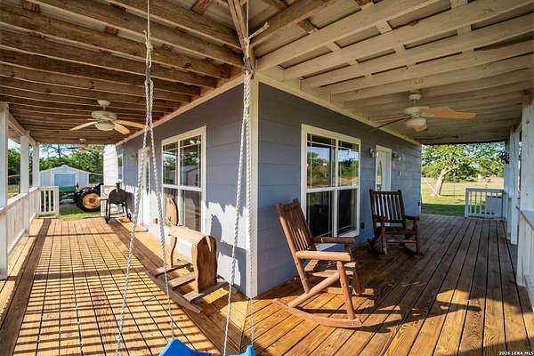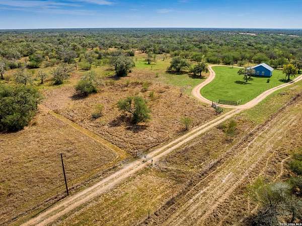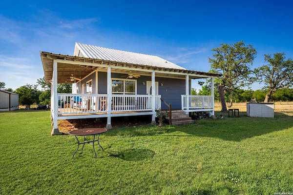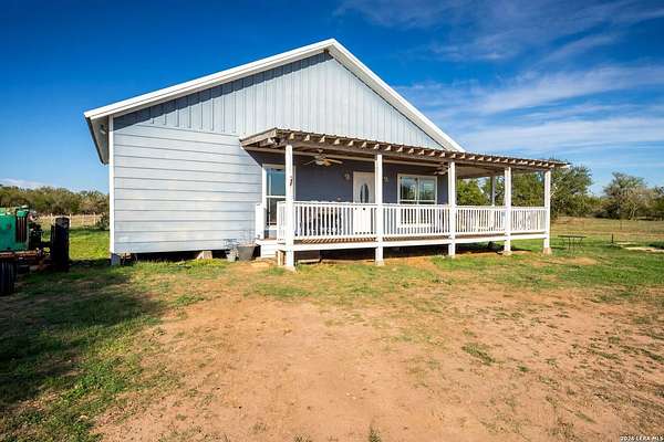 Stop the search... you've found your private country retreat. Tucked away down a quiet and peaceful gravel road, this beautiful 5-acre property in the countryside of Cuero offers the perfect escape from the noise of the city. As you drive down the serene country road, you'll arrive at a custom-built 2015 home featuring a stunning wrap-around porch that invites you to slow down and take in the beauty around you. Start your mornings with coffee while watching the sunrise over the open land, and wind down in the evenings enjoying breathtaking Texas sunsets as wildlife moves through the property. Inside, you'll be welcomed by an open-concept layout with 9-foot ceilings that creates a bright and spacious feel throughout the living area. The kitchen features a gas stove and flows easily into the main living space, making it perfect for everyday living or gathering with family and friends. Recent updates include a new HVAC system installed in 2024 and brand-new carpet in the bedrooms (2026). The home is very well insulated with open-cell foam insulation, helping keep it comfortable year-round. The attic also offers great potential to finish out and create a loft or additional living space. Outside, the property includes two storage sheds, plenty of room to roam, and appliances that convey with the home, making it move-in ready. Includes RV hook up, 220 volt 30 amp plug in. If you've been dreaming of peaceful country living, watching deer from your porch, and enjoying both sunrise and sunset views from your own land, this Cuero property is a beautiful opportunity you won't want to miss.