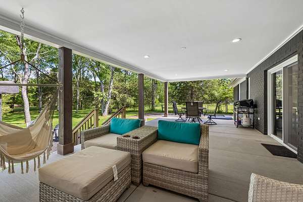 Enjoy peaceful views from the expansive covered porch that stretches across the entire back of the home, or relax by the fire pit in your private backyard oasis. Additional features include a full Generac generator system, built-in tornado shelter, and a setting that sits off the road for ultimate privacy.