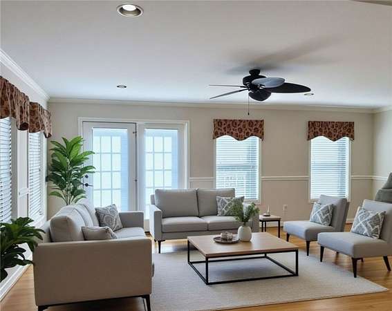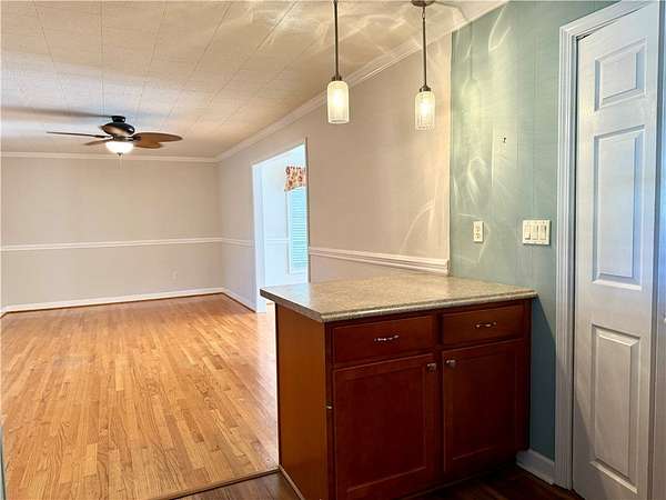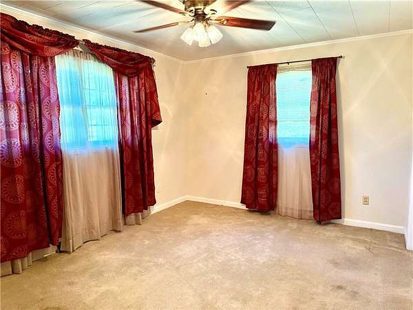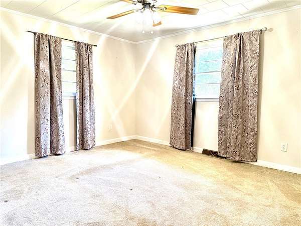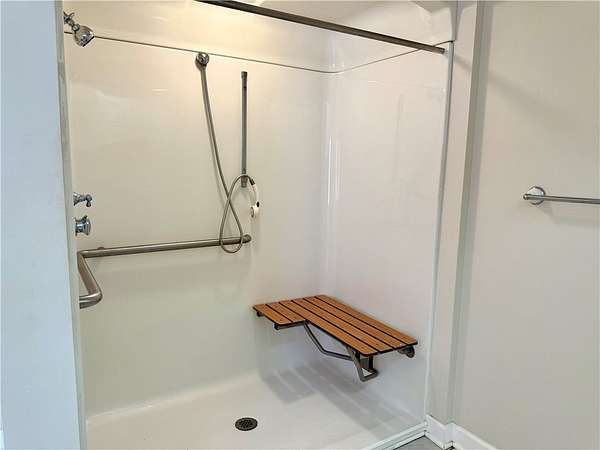 - Ceiling Fans, Laminate Countertop, Main Level Primary, Walk In Shower, Window Treatments