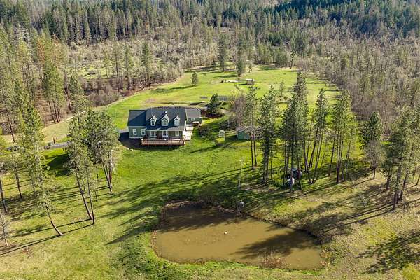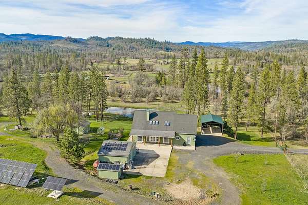 Beautiful mountain hideaway on 40 private private acres bordered on two sides by BLM land offering exceptional privacy, peace, and protected surroundings. Custom built 3 bedroom, 2.5 bath contemporary home with 2,280 sq.ft. featuring an open floor plan, quality updates, and comfortable living throughout. Enjoy stunning views, two year-round ponds, perimeter and interior fencing, gated entry, abundant wildlife including deer, elk, and wild turkey, plus animal shelter for hobby farm or recreational use. Large insulated shop, 2-car attached parking, RV port, and extensive RV parking provide outstanding functionality. Seller-owned auxiliary solar power with two systems producing over 8,000 kilowatts plus significant battery backup adds energy independence and long-term value. A rare private retreat with beauty, utility, and self-sufficient living.