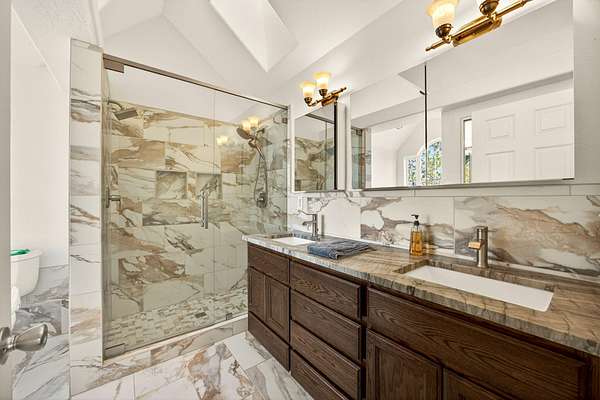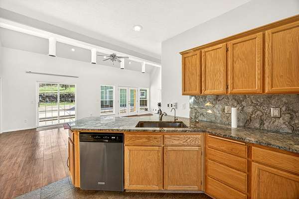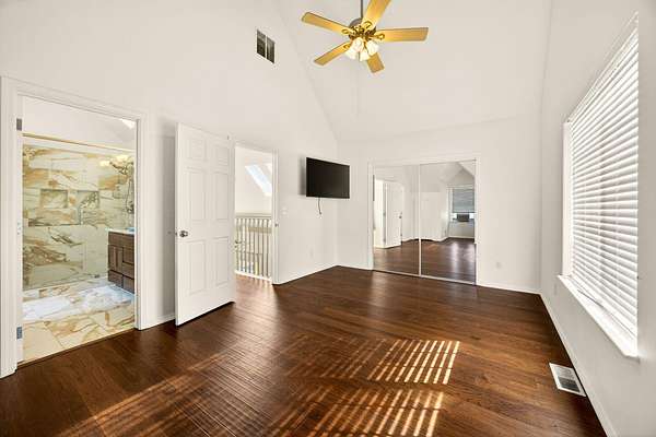 - Breakfast Bar, Built-In Features, Ceiling Fan(s), Central Vacuum, Double Vanity, Granite Counters, Linen Closet, Open Floorplan, Pantry, Shower/Tub Combo, Soaking Tub, Tile Shower, Vaulted Ceiling(s), Walk-In Closet(s)
