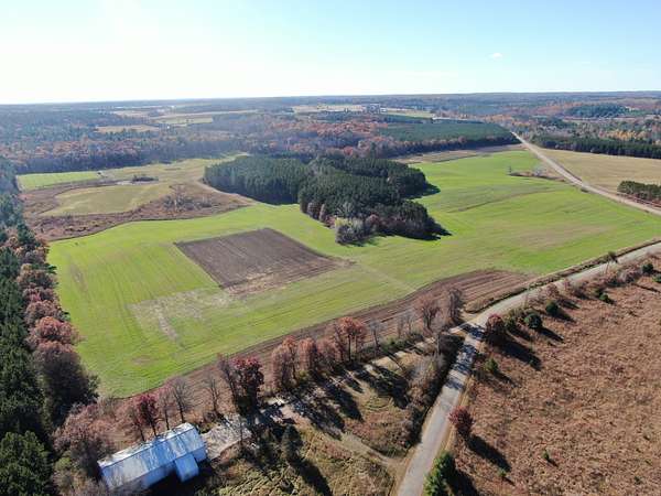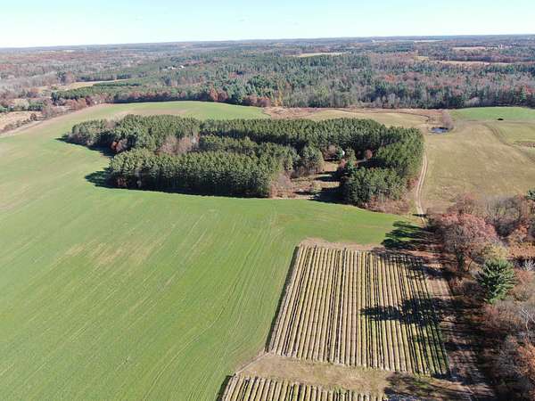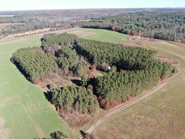 This 118+- acre Portage County property blends productive ag ground with Wisconsin outdoor recreation. Over 80 acres are tillable, including approx. 8 acres currently leased to a local ginseng farmer for added income. The former homesite includes a shed with concrete floor and electric, plus an existing well and septic, perfect a future home or farm base. A 14+- acre timber section in the center of the property offers strong oak regeneration and a stand of pines that could be harvested for immediate return. The mix of fields, woods, and cover creates natural wildlife corridors with great potential for whitetail management. The property's west boundary connects to Flume Creek Cedars, a DNR area known for its clear, cold trout stream & hunting giving you additional acreage to explore.