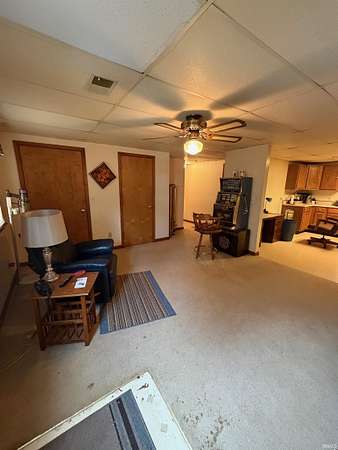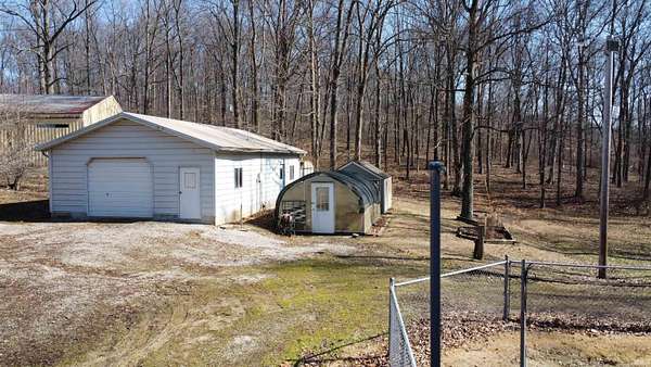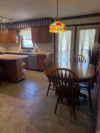 10063 E State Rd 56, Dubois, IN: Discover your perfect retreat in this beautifully maintained manufactured home, thoughtfully positioned over a full finished walk-out basement. Offering versatile living space for families, multi-generational setups, or even rental potential. 2 beds, 1 full bath, full kitchen, and living room on the main level. The lower level has another 3 beds, full bath, living room, & another full kitchen area. This home sits on 1.83 acres on a dead-end gravel lane with plenty of outdoor space and privacy. There is a large 2 car attached garage, a detached garage with a concrete floor, & 2 greenhouses that are all heated! Also included is a small shed in the back for even more storage. This is the ultimate hobby farm or gardener's dream! Extend your growing season dramatically with the heated greenhouses, no more Midwest seasons holding you back! Seller will pay the Amish to install a new roof! Buyer will get choice of material (metal/shingle) along with the color. Paid in full to the contractor by the seller at closing.