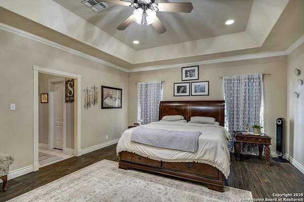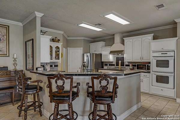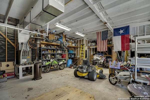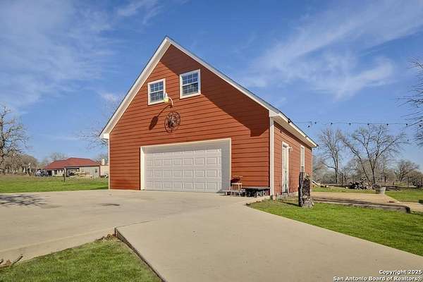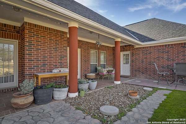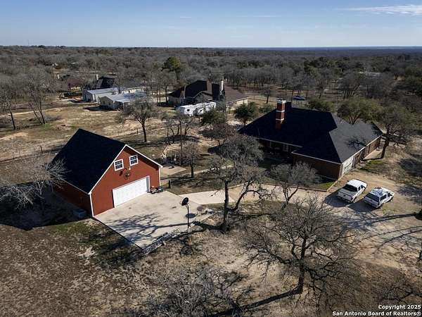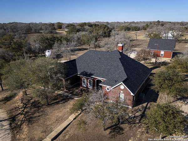 Est $3,883/moExceptionally priced custom-built brick home on over 2.5 acres! Step inside a welcoming entry with high ceilings and a spacious family room featuring a wood-burning fireplace and French doors opening to a large back patio. This thoughtfully designed home includes a front dining room and a generous eat-in kitchen with double ovens, a newer 5-burner cooktop, and a new vent hood and dishwasher (installed 2025). The split primary suite offers dual vanities, a jetted tub, and two walk-in closets with built-ins. Additional features include an attached garage with extra storage and new opener, plus a large detached shop/garage with a half bath and a massive unfinished loft. Set on fully fenced acreage in La Vernia ISD.