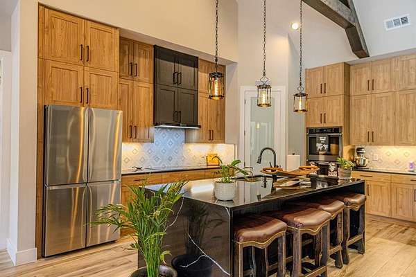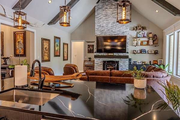 - Built-In Features, Decorative Lighting, Double Vanity, Eat-In Kitchen, Flat Screen Wiring, High Speed Internet Available, Kitchen Island, Open Floorplan, Paneling, Pantry, Smart Home System, Vaulted Ceiling(s), Walk-In Closet(s)