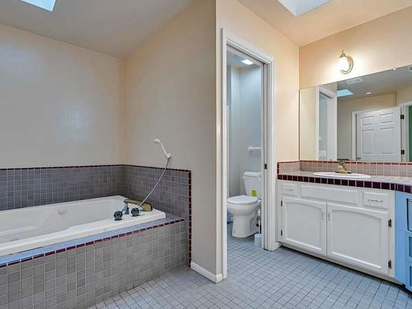 - Built-In Desk, Double Sink, Granite Counter Tops, Jet Tub, Kitchen Island, On Demand Hot Water, Pantry, Shower Enclosure, Skylight, Tile Counter Tops, Tile Counters, Tile Floors, Tub/Shower Enclosure, Vaulted Ceilings, Walk-In Closet