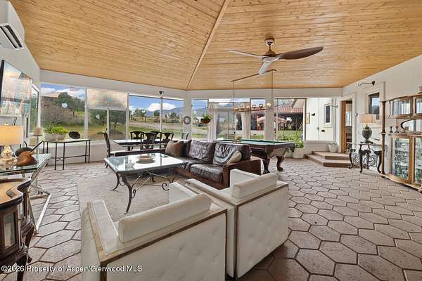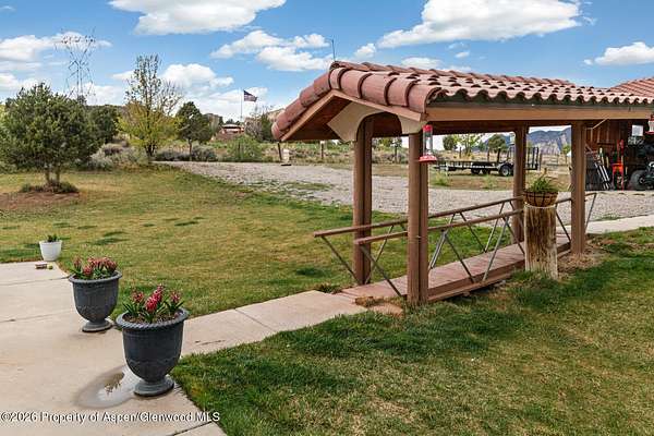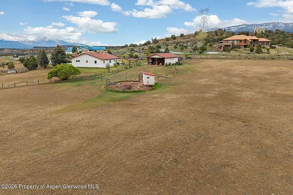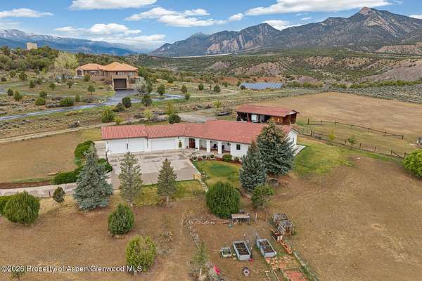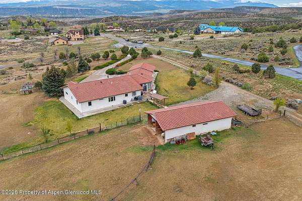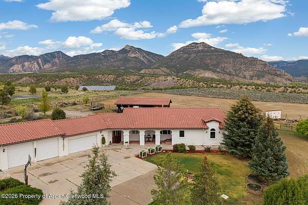 Welcome to this Adobe-style ranchette in the desirable Rifle Creek Estates neighborhood, just north of Rifle. Sited on just under 7 acres at the end of Mesa Drive, this property borders BLM land along the northern boundary and offers sweeping countryside views of nearby ranchlands and scenic mountain ridgelines. The flat acreage and three-sided barn with two horse stalls provide an excellent opportunity for a small horse property. The home showcases classic Southwestern Adobe architecture, featuring mud-brick walls painted a contemporary white, rounded archways, exposed wood beams, and ceramic red clay roof tiles. Enjoy convenient single-level living with three bedrooms, two full bathrooms, and ample space for both storage and entertaining. Additional features include central A/C, a gas fireplace in the living room, a pantry off the kitchen, a spacious laundry/mechanical room, and a functional entry/mudroom. Recent upgrades include new interior paint, updated light fixtures throughout, and a renovated guest bathroom with a new soaking tub and tile. The former open-air sunroom between the garage and main home has been fully enclosed and equipped with a mini-split system, adding approximately 693 square feet of flexible living space--ideal for a second living area, recreation room, or entertaining space. There is no shortage of storage for your ranching gear and Colorado toys, with an attached four-car garage and a detached three-sided barn that accommodates up to three additional vehicles plus extra storage. The chicken coop has also been upgraded for year-round use with electric heaters and an automatic door. Conveniently located just 10 minutes from downtown Rifle, 5 minutes from the Rifle Creek Golf Course, and 5 minutes from Rifle Gap State Park--home to a 360-acre reservoir popular for fishing, boating, waterskiing, and camping. Bring your horses, ATVs, and even the chickens--this move-in-ready ranchette is your gateway to peaceful country living in the Mountain West.