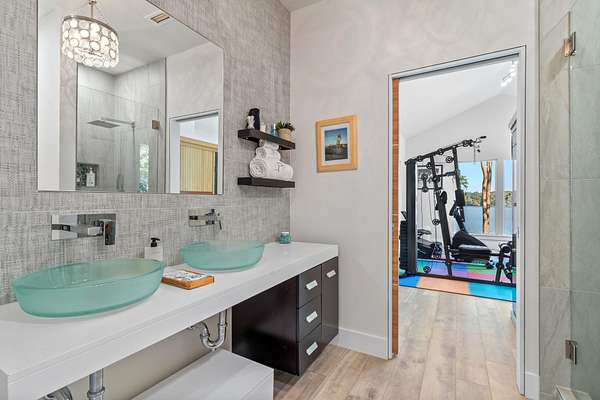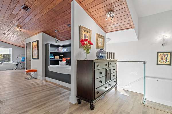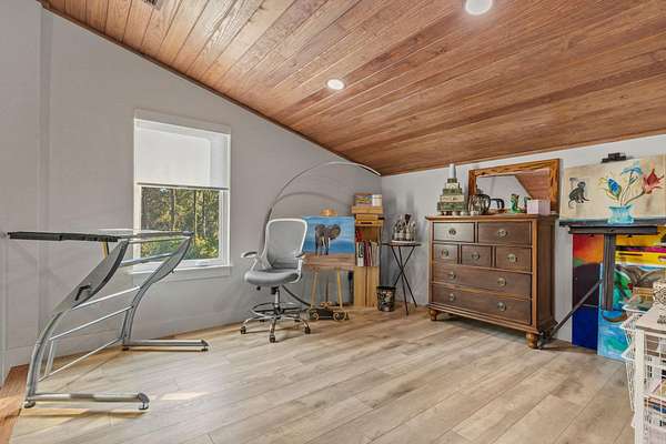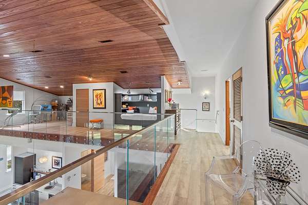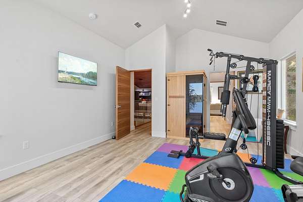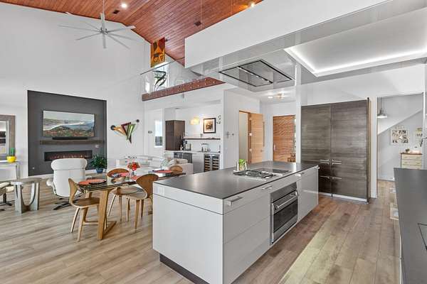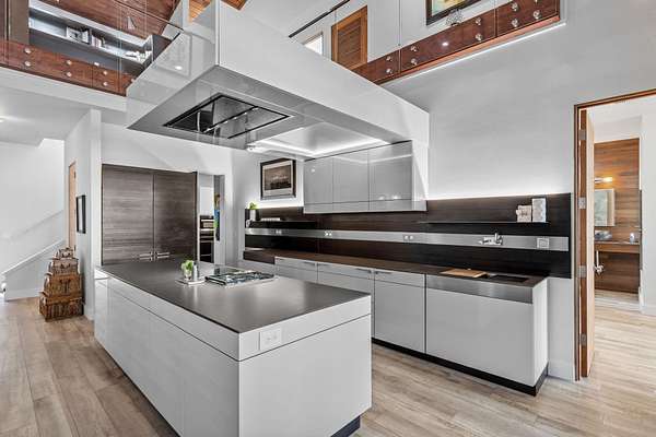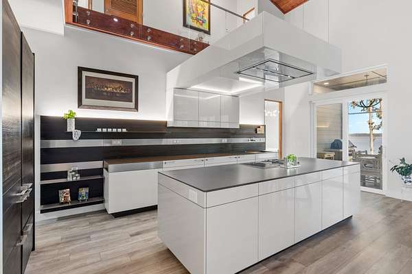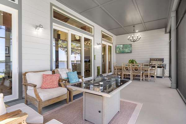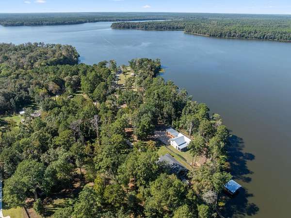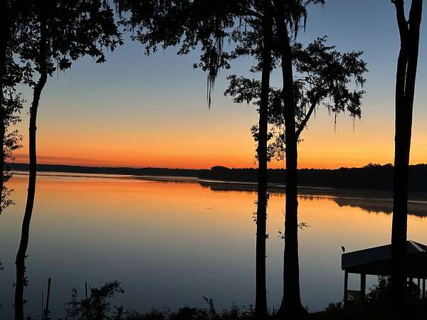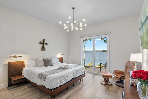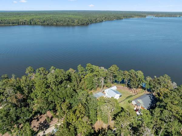 One or more photo(s) has been virtually enhanced. Gorgeous 2024-built gated modern lakefront estate on 1.7 acres directly on Lake Talquin! Enjoy breathtaking sunrises and nearly 360 degrees water views from this custom home featuring a private dock with 2 boat lifts, 1 jet ski lift, a walkway to the water, and fenced yard. Step inside to soaring 22' wood-paneled ceilings and a ventless gas fireplace in the spacious living room, complete with an elegant wet bar offering dual wine coolers, ice maker, and reverse osmosis system. The chef's kitchen impresses with Wolf gas and electric cooktops, Wolf oven, Sub-Zero refrigerator and freezer towers, Miele dishwasher, electric cabinetry, and Dornbracht fixtures. A prep pantry/laundry area includes a Miele plumbed coffeemaker, steam oven, and convection oven. The primary suite offers a private deck, clear-blue soaking tub with fireplace, custom glass shower, and hidden laundry access. Additional highlights include an office with Murphy door, art studio, two upstairs bedrooms, screened porch, 4-car insulated garage with custom Clopay doors, whole-house filtration, natural gas, and security system.