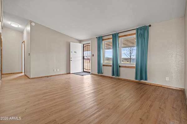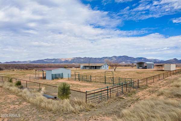 Fully fenced 4+ acre mini-ranch with all usable land and spectacular mountain views. This horse-ready property features established turnouts, a two-car carport, large container storage, and a permitted covered structure with power--ideal for equipment, workshop, or RV parking. The home is positioned to capture beautiful desert sunrises and sunsets and includes new Andersen windows and a sliding glass door for improved efficiency and natural light. Enjoy outdoor living on the full-length covered patio overlooking wide-open space and surrounding mountains. Level acreage offers endless flexibility for horses, livestock, or future improvements. A rare opportunity to own a functional rural property with privacy, views, and room to grow, all within convenient distance to town.