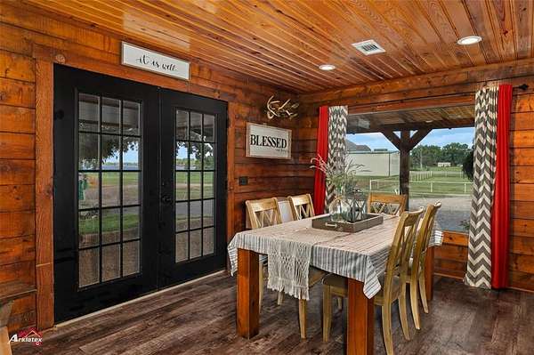 One of a kind home custom built on wide open viewing pleasure of caddo lake. Wake to your dream come true in this open floor plan with 3 huge bedrooms and two full baths and second loft living area. The home is a ranch that boasts a barn with 5 stalls and tack room, and pipe fence for the horses. Live your dream with your horses and the lake at your disposal to live your best life! Welcome the gorgeous sunrises and sunsets on your patio overlooking the wide open expansive views. Entertain the family and friends in the gourmet open island kitchen while the large living area with stone and wood accents. The owners suite boasts a huge custom walk in shower and closet, double vanities and easy care concrete floors. The other bedrooms are oversized and the home can be enlarged with all the land available if desired. The Minerals do not transfer and not available. There is a well on the property that is active, all other surface rights transfer. Dont let this one of. a kind property get away to have everythng you've dreamed of in your own little piece of heaven. Exact land acreage to be determined and is approximate