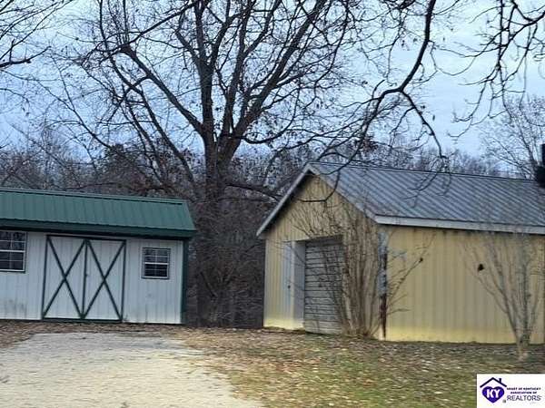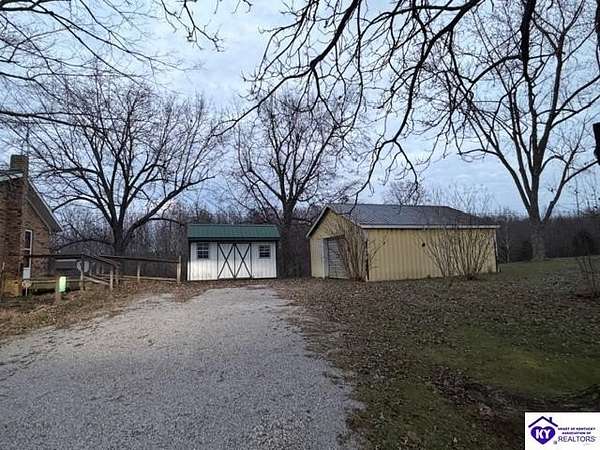 This 2 bedroom home screams starter home! Brick ranch with city water, a detached garage and a separate storage building is plenty of room to come home to. Low maintenance 1200 sq' brick home, on a pretty flat 2 acre yard and a view of Hwy 79, close to Short Creek. Easy to get to WK Parkway, Leitchfield or Bowling Green. If you are looking to move to Grayson County, Kentucky, this location puts you close to recreation at Rough River State Park and Rough River Lake with a short commute to work. Inside this 1979 built home there is room for updates but the bones feel solid. As a starter home, so much could be done to turn the 80's charm into a modern day cottage. Paint can be your friend when it comes to updates in this home. No restrictions if you are an investor wanting a rental property. Sellers are motivated for your offer. Home buyers will appreciate the gentle country setting of a relaxed lifestyle with a home ready for personal preference updates.