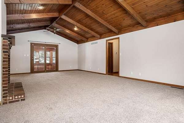 Welcome to this stunning large ranch home featuring 3 spacious bedrooms and 2 bathrooms, all set on a beautiful 2.52-acre lot that backs up to the Roland Olson County Forest Preserve. This property offers a perfect blend of space and comfort, complete with a great eat-in kitchen featuring stainless appliances. Additionally, it includes a spacious 3-car garage and boasts over 1,800 square feet of living space on the main level. This property is zoned for equestrian use, providing opportunities for horse enthusiasts to enjoy the country lifestyle. Recent upgrades include all newer windows throughout, allowing for plenty of natural light to flow in, as well as fresh paint that adds a modern touch. The main level showcases pretty hardwood flooring, stylish tile, and new carpeting, creating a warm and inviting atmosphere. You will love the large first-floor laundry/mudroom conveniently located off the garage. The highlight of the home is the expansive living room, featuring tall, gorgeous wood ceilings with beams and a cozy wood-burning fireplace. The split entry design leads to a primary suite complete with an en suite bathroom, walk-in closet, and a slider that grants access to the back deck. The two additional bedrooms are situated on the opposite side of the home, offering privacy and comfort. Step into the delightful three-season room with cedar accents. The tranquil surroundings are complemented by mature trees, creating a serene environment near the Roscoe and Hononegah School districts. The basement offers great potential for finishing, complete with a large window and a finished rec room that provides additional living space. With the roof having been replaced in 2012 and nestled on a peaceful street, this home is a great opportunity for anyone looking to settle in a beautiful location. Zone. Don't miss the chance to make this charming property your own!