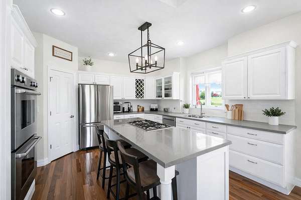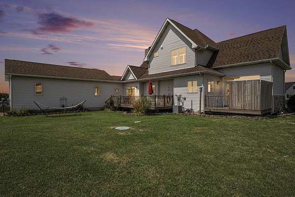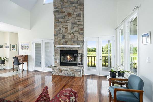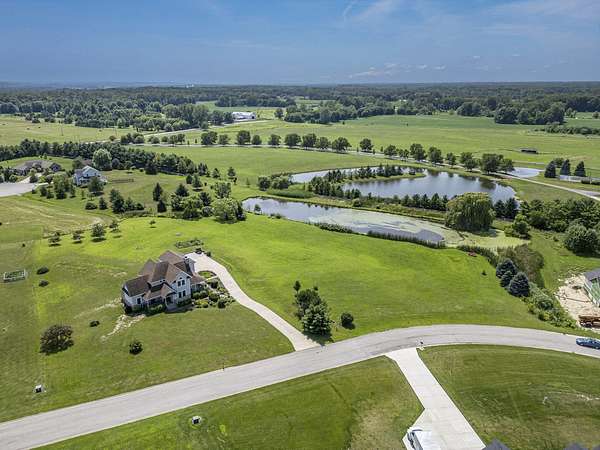 Welcome to your retreat in the picturesque Galena Meadows subdivision on an impressive 2.6 acres--including an additional adjacent lot.This meticulously maintained home offers an exceptional blend of natural surroundings and modern convenience. The open-concept main living area impresses with soaring two-story ceilings and a striking floor-to-ceiling, wood-burning stone fireplace--creating a warm and inviting focal point for cozy evenings. Expansive windows and transoms bathe the space in natural light, while rich 3/4 inch solid teak hardwood floors add timeless elegance. Above, a loft overlooks the great room, showcasing the dramatic fireplace, architectural windows, and breathtaking sunset views over the pond.The kitchen is as functional as it is beautiful, featuring custom cabinetry with slide-out drawers, a spacious walk-in pantry, double ovens, and a blend of Corian and granite countertops. Newer stainless steel appliances include the dishwasher, refrigerator, washer and dryer. The main-level laundry room is bright, airy, and conveniently located for everyday ease.The main-floor primary suite offers a peaceful retreat, highlighted by a cathedral ceiling and triple French doors with transom windows that welcome the morning sun.The spacious en-suite bath features a whirlpool tub, separate his-and-hers vanities, a walk-in shower, and a generous walk-in closet.Outdoor living is equally inviting, with both front and back porches. The side porch is perfect for taking in stunning sunsets, while the back offers a tranquil setting for birdwatching--complete with frequent hummingbird visits--grilling, and relaxing in the serene surroundings.The lower level is designed for entertaining, complete with a bar, theater room, and a 9-inch sound-insulated ceiling for an immersive experience.Located in a quiet, well-maintained neighborhood just five minutes from New Buffalo and ten minutes from the beaches of Lake Michigan, this home sits in the highly sought-after Michiana Corridor.