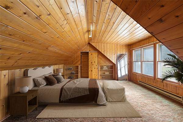 - Fireplace, Main Level Primary, Vaulted Ceilings, Walk In Closets