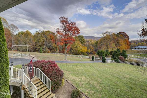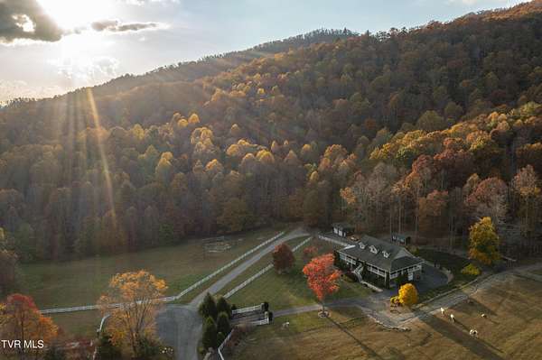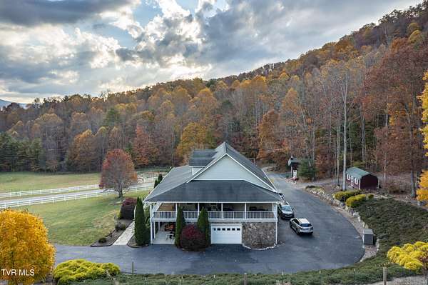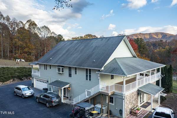 Nestled within the gated community of Holly Meadow Farms, this exceptional 18-acre property combines luxury, functionality, and breathtaking natural beauty. Enter through the remote-controlled gate to discover a stunning residence with equally remote-controlled access to the home itself. Every angle offers awe-inspiring views of sprawling pastures and majestic mountains, perfect for those who seek peace and connection with nature. Explore miles of hiking and horseback riding trails, or simply relax on the porch, savoring your morning coffee while watching wildlife. The home is designed for both relaxation and entertaining, with cozy evenings by the fireplace and ample space for gatherings. The property includes a handicap-accessible elevator, ensuring accessibility for everyone. The addition of a generator provides peace of mind, with one dedicated to the house and a separate generator for the well-equipped barn. The barn itself is a true modern amenity, complete with WiFi connectivity, heat, a tankless water heater, and space to support your hobbies, animals, or work needs. An apartment or mother-in-law suite extends the potential for guests, family, or rental income. This versatile retreat offers endless possibilities, from establishing a family compound to developing a private sanctuary or exploring subdivision opportunities. Brand new gutter system just installed with an excellent finish. A new architectural shingle roof in Chateau Green was professionally installed by Best Choice Roofing out of Johnson City. This property is ready for its next chapter-schedule your showing today to experience the ultimate in tranquility, privacy, and unmatched potential!