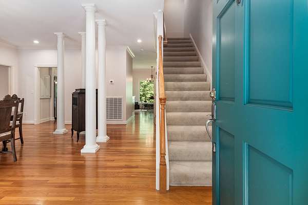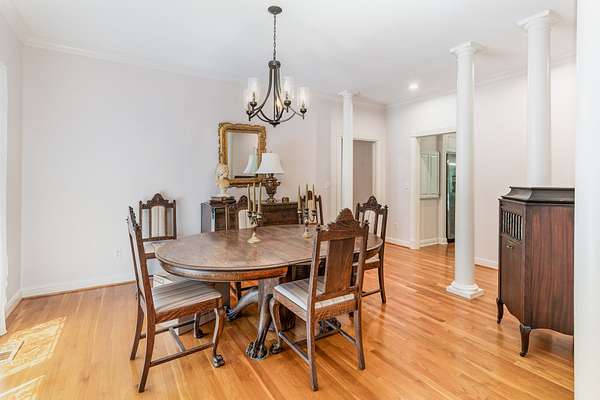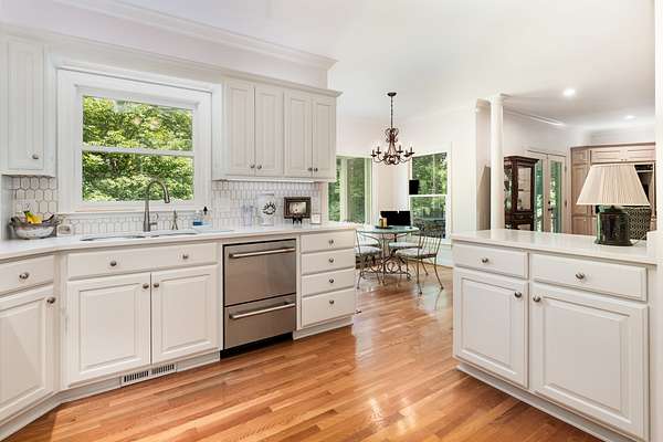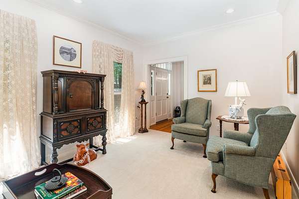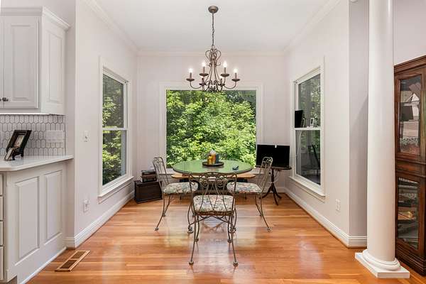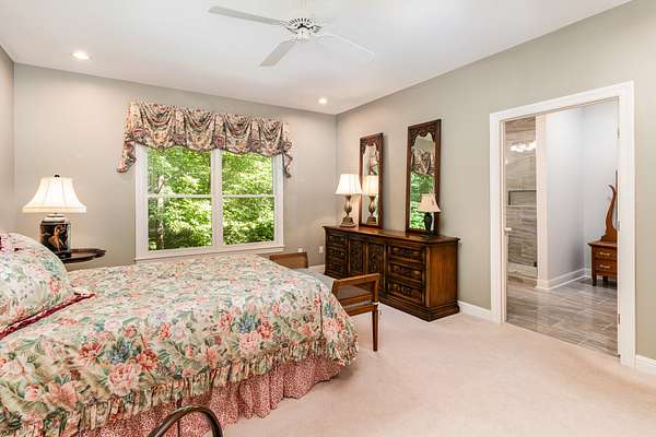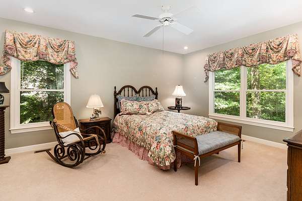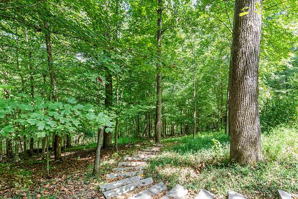 Welcome to this stunning custom-built, all-brick home nestled on 4.7 acres of serene, wooded landscape. Perched perfectly atop a ridge, this residence captures breathtaking views from every angle. The home was thoughtfully designed by its original owner, who added distinctive touches like the hand-crafted front entry arch and a custom fireplace. Inside, you'll find light-filled interiors with gleaming hardwood floors, elegant crown molding, and 9-foot ceilings throughout. The kitchen opens to a cozy den and features a bay window that frames nature like a work of art. A remodeled kitchen with a rare dumbwaiter provide function and charm--easily transporting groceries from the garage to the kitchen and up to the second floor. The second story offers an additional 920 square feet of unfinished space for whatever your heart imagines. It has already been approved for a half bath. Relax year-round on the vaulted 15' x 11' covered back porch--perfect for morning coffee or peaceful evenings. The finished basement includes a large bedroom, full bath, recreation room, and ample storage. A 2+ car garage completes the home's practical features.