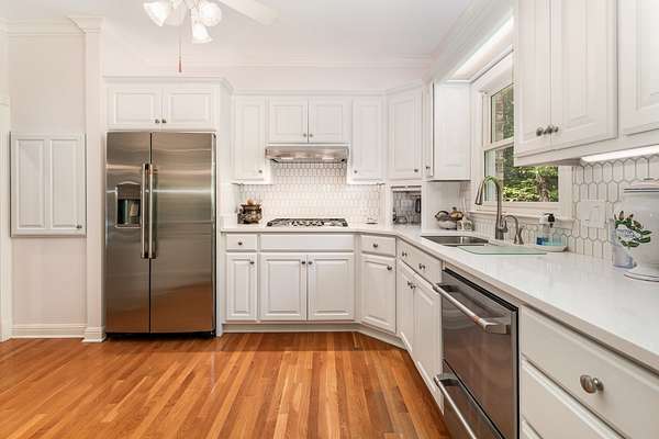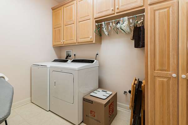 - Built-In Electric Oven, Dishwasher, Disposal, Dryer, Electric Oven, Freezer, Gas Range, Ice Maker, Microwave, Refrigerator, Stainless Steel Appliance(s), Washer