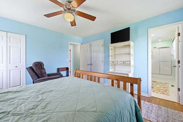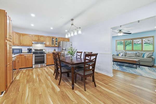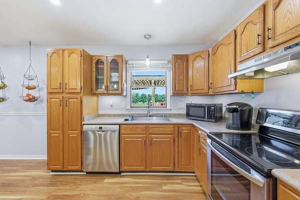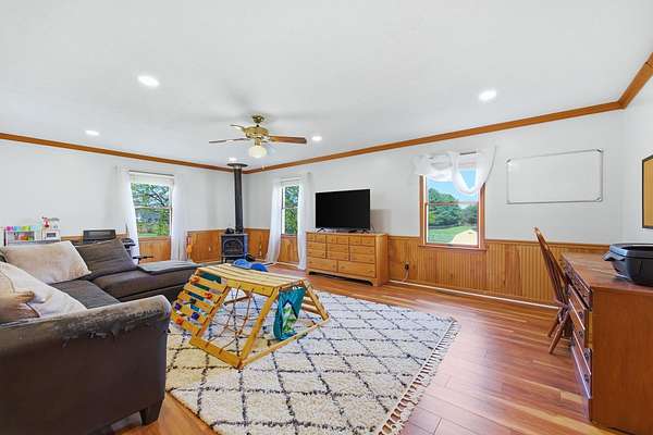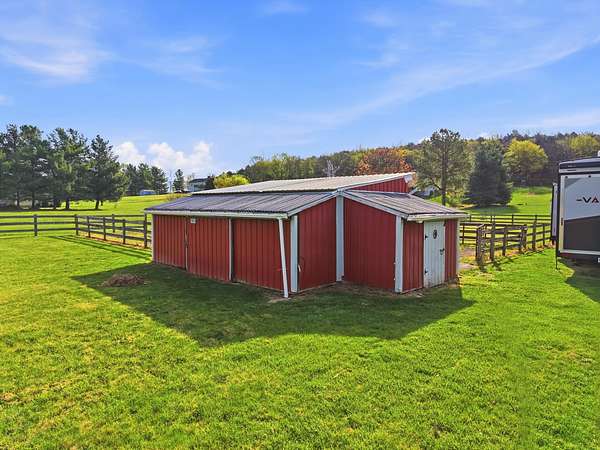Welcome to 1008 Shipwreck Drive in New Market, located in the desirable North Fork Farms subdivision where peaceful country living meets everyday convenience. Situated on 3.34 acres, this property is ideal for a farmette with private community river access and close proximity to the historic New Market Battlefield, all just minutes from I-81. Offering 2,168 sq ft, this 4-bedroom, 2-bath home features a welcoming front porch and a warm, cohesive interior with luxury vinyl plank flooring through the main living areas and tile flooring in both bathrooms. The eat-in kitchen includes rich wood cabinetry, stainless steel appliances, and ample space to gather. The primary suite offers his and hers closets and a private ensuite bath, while two additional bedrooms and a second full bath provide flexibility. A large family room with a cozy wood stove adds charm, with a versatile 4th bedroom just off the space, ideal for an office, gym, or playroom. Outside, enjoy mountain views from the expansive back deck overlooking a spacious yard. The 2-stall barn includes a fenced riding ring, electric, running water, and tack room. Much of the property is fenced, with two storage sheds and a 1-car garage completing this well-rounded property.