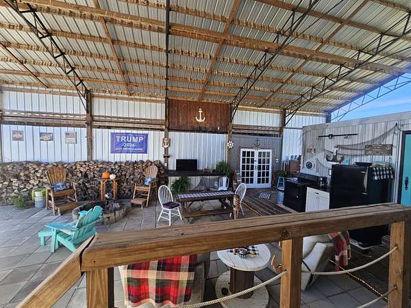 One of a kind property built on 2 lots ! Outdoor living at it's best with 2600 sq ft under roof! House your RV with a full size outdoor kitchen plus a bar area, enclosed laundry and full bath, and a workshop/garage area with an air compressor! Additional carport cover for another vehicle. Privacy galore and tastefully decorated with a river view! The seller incorporated 100 yr old barn wood and metal plus railroad ties and French doors for a rustic style. Cook, grill, watch TV, tinker with your car, ATV or boat, hang out at the bar or host a party all under one roof! Beechview is a highly popular gated community on the TN River halfway between Nashville and Memphis. Close to golf and marinas. City water and paved roads. Furniture is included with the price. This one is move in ready! Seller will include the boat and camper into the deal for a package price of $200k!