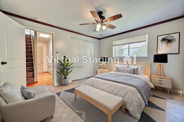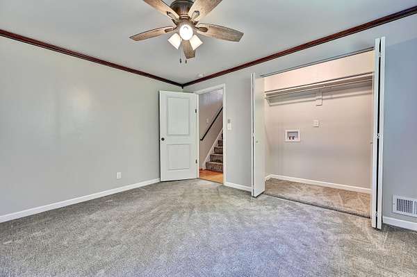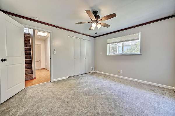 - Attic Storage, Bookcases, Ceiling Fan(s), Chandelier, Eat-In Kitchen, Master Downstairs, Natural Woodwork, Pantry, Tile Counters, Track Lighting, Walk-In Closet(s)