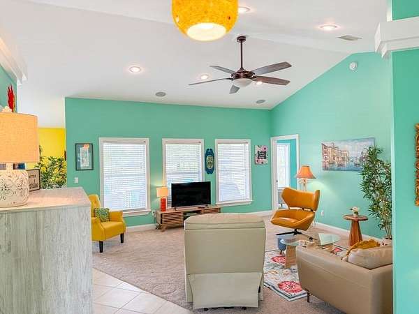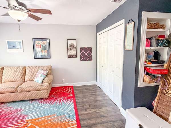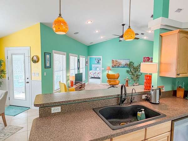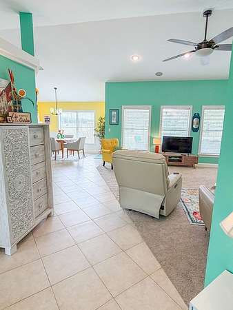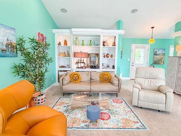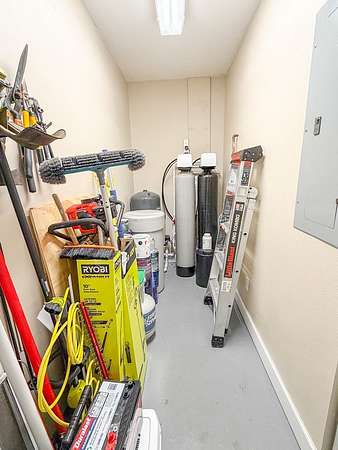 - Blinds, Book Case(s), Breakfast Bar, Ceiling Fans, Decorative Lights, Electric Dryer, Electric Range, Front Load Washer, Garbage Disposal, Laundry/Utility Room, Living Room, Open Floor Plan, Pantry, Pendant Lighting, Smoke Detector, Split Floor Plan, Walk-In Closet(s), Water Softener, Whole House Water Filter, Window Treatment