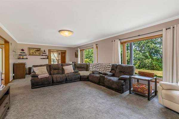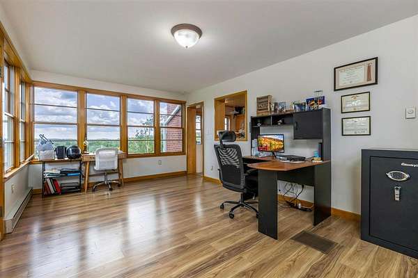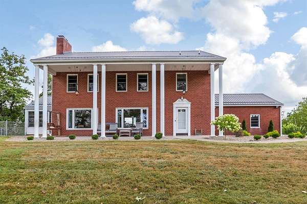 This Prestigious Custom Built Home boasts over 3500 Sq. Ft. of living space w/ 5BR's, 3.5 BA on 7 acres! Exterior features include 36x36 Barn w/ electric & water, electric fenced area for animals, pond, woods, & amazing views! The Front entry makes a statement w/ new landscaping, sidewalk, & concrete porch. Tiled Entry Foyer leads to a spacious Living Rm w/gas fireplace. The Formal Dining Rm leads to the deck & hot tub. From the Dining Rm, the Kitchen features Custom Frederick Helmuth Maple Cabinets, Corian Counter tops, & newer appliances. Plenty of sun light in your Sunroom or Office. A Full Bath & newer Laundry Rm complete the first floor. Walk up the spiral staircase to your Spacious Owner's Suite w/Custom Wardrobe. The Owner's Bath features heated tile floors, double sinks, modern glass shower, & soaking tub. 2 Additional BR's & Remodeled Full Bath w/ heated tile floors complete the 2nd Level. The Lower level has been newly updated adding a Family Rm, 2 additional BR's & a Half Bath. Many updates including metal roofing for the home & barn, newer lighting, new flooring, & more! Pre-approved buyers call today for your showing.