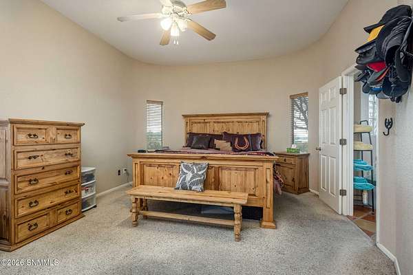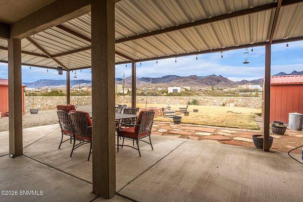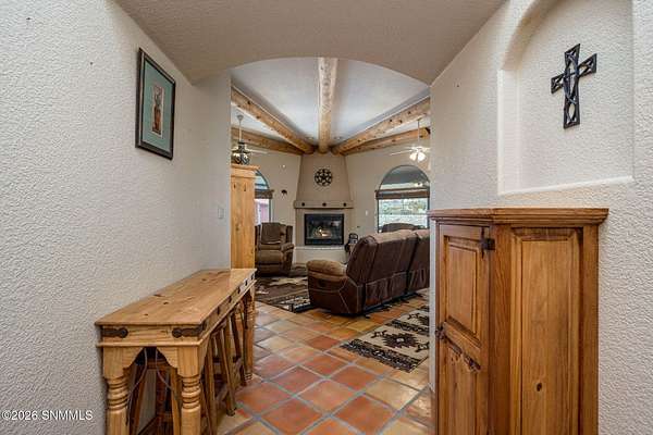 Set on 2.65 acres in the sought-after Talavera area, this Southwestern-style home offers beautiful mountain and valley views along with space to live, work, and enjoy the outdoors. The interior showcases classic Southwest details including vigas, Saltillo tile flooring in the main living areas, and a cozy kiva corner fireplace. The split bedroom plan provides separation between the primary suite and the additional bedrooms. The primary suite features a jetted tub, separate shower, and walk-in closet, while three additional bedrooms and a full guest bath offer flexible living options. Refrigerated air adds year-round comfort. Step outside to an east-facing patio, ideal for morning coffee or evening cookouts while taking in the Organ Mountain views. A 1,200 sq ft metal shop provides outstanding space for detached garage, storage, hobbies, or projects. A special opportunity.