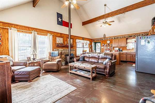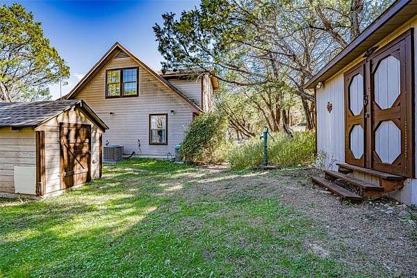 Rustic Texas living on a little over 5 acres, with over 200 ft of waterfront on the Brazos River! Flexible floor plan with 2 bedrooms and office utility area or 3rd bedroom. Private setting surrounded by nature, exceptional views, local history, dinosaur tracks and fossils found on site! Explore the natural landscape, or simply take in the tranquil setting from your porch. Whether you're looking for a private getaway, a place to enjoy wildlife, or a home with room to roam, this property delivers a rare blend of character, serenity, and adventure. There is a working water well on site that is not currently being used since the county brought water to the property. A 2 car concrete slab is available to install a carport or garage if needed. Don't miss your opportunity to own a slice of Texas history on the Brazos!