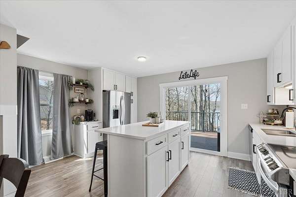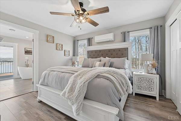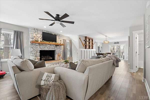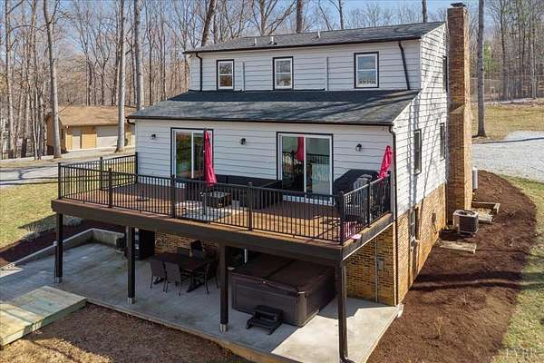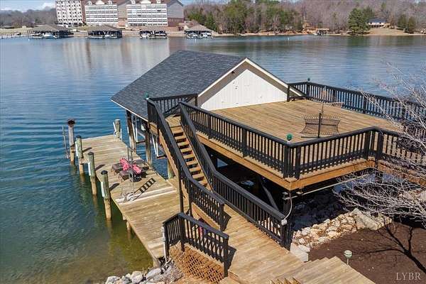 Your opportunity to own a private retreat on Smith Mountain Lake. This 4/4 home, on the main level, features a welcoming covered front porch, open-concept living area with a gas log fireplace, and a main-level primary bedroom plus 1 additional bedroom, along with 2 full baths. The spacious layout is perfect for gathering, and a large deck balcony offers beautiful lake views and outdoor entertaining space. Upstairs you'll find 2 additional bedrooms and another full bath. The lower level includes a rec room, bonus room, wet bar, and 1 additional full bath, creating the perfect space for relaxing or entertaining. Step outside to a covered patio with hot tub, then take the short walk to the gazebo and private dock, complete with a covered boat slip, covered jet ski slip, and deck area on the dock to enjoy everything lake living has to offer.