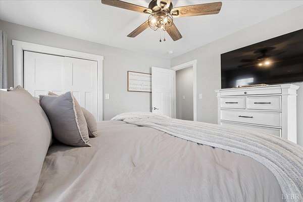 - Ceiling Fan(s), Comcast/Xfinity, Drapes, Main Level Bedroom, Primary Bed W/Bath, Rods, Tile Bath(s)