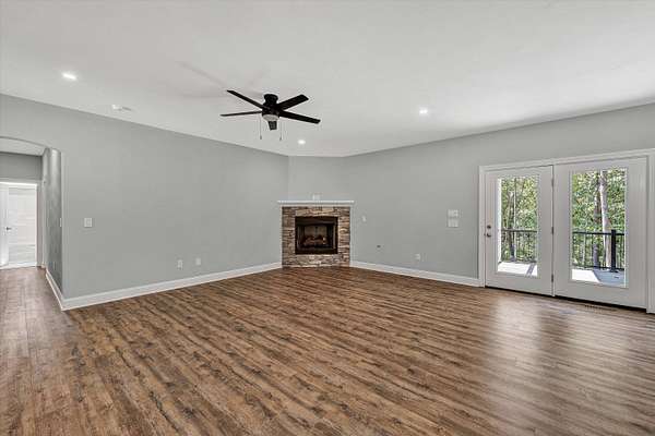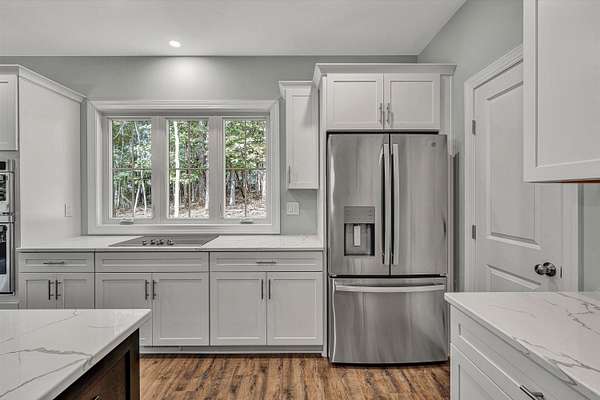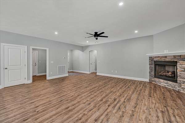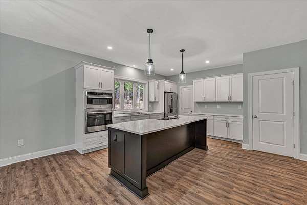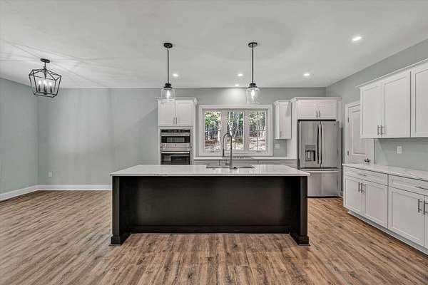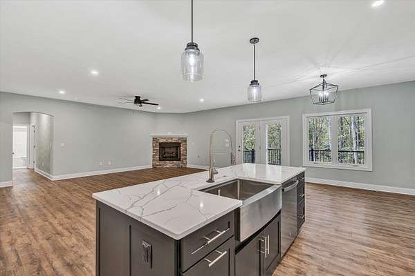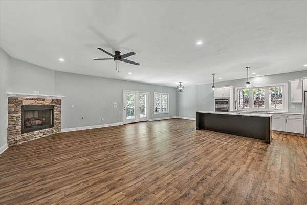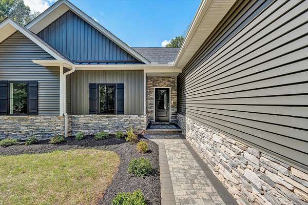 Brand new construction on 1.6 acres! This thoughtfully designed 3-bedroom, 2-bathroom home offers the perfect blend of modern finishes and functional living. The open-concept kitchen features stunning quartz countertops, stainless steel appliances, a large pantry, and flows seamlessly into the main living space complete with a cozy gas fireplace. Enjoy durable LVP flooring throughout, with stylish tile in the bathrooms. Step outside onto your Trex deck overlooking a private backyard- ideal for relaxing or entertaining. The exterior boasts a low-maintenance combination of vinyl and stone, plus a beautiful paver sidewalk that adds curb appeal. Designed for convenience, this home offers main-level laundry for true one-floor living, and a full unfinished basement that's already plumbed for a third bathroom- ready for your finishing touch or perfect as-is for ample storage. The attached 2-car garage provides easy access and additional space. All of this with a peaceful, private feel, yet close to shopping, dining, and other amenities. Don't miss your chance to own this quality-built home in a prime location!