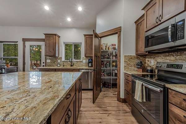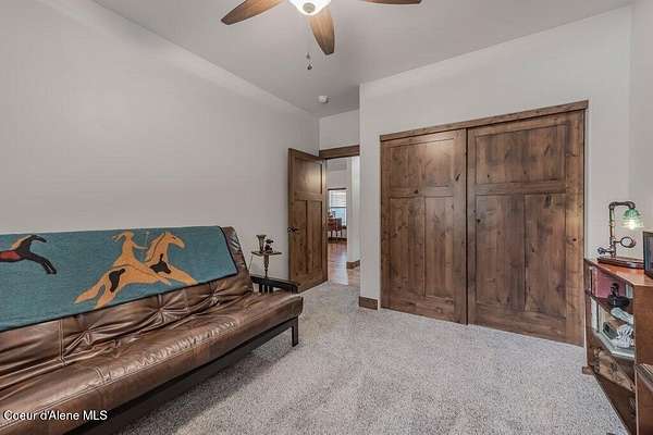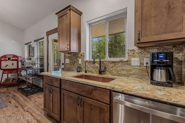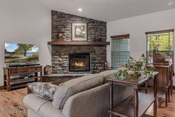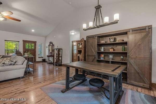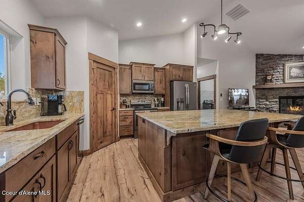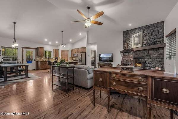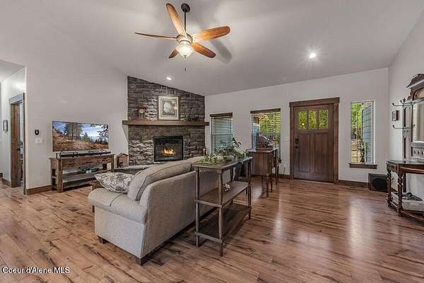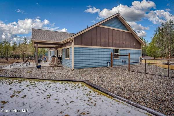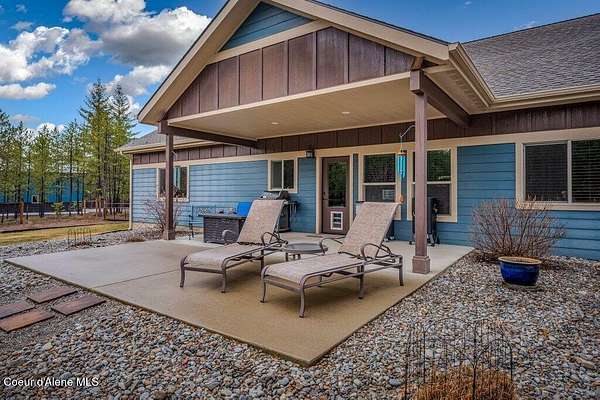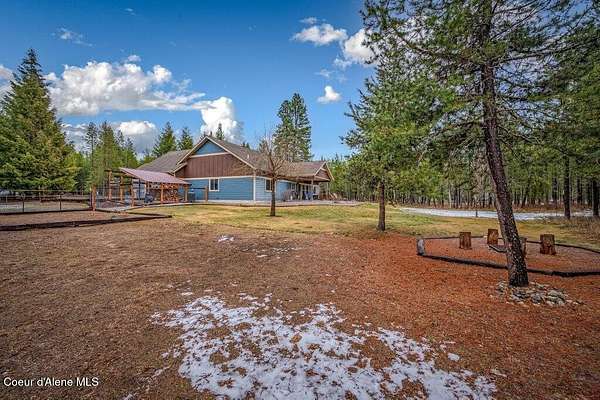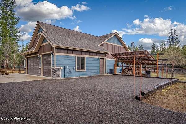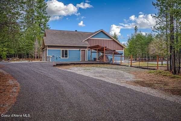Tucked away in a peaceful, private setting, this beautifully maintained 2016 home rests on 6.56 level acres and offers refined North Idaho living. The 2,232 sq ft. residence features 3 bedrooms, 2 baths, and a bonus room with an open-concept design, vaulted ceilings, a stone fireplace, granite kitchen counters, and knotty alder interior doors. The elegant primary suite includes dual sinks, a walk-in closet, and a stunning tile shower, while central air and an efficient heat pump provide year-round comfort. A built-in generator supplies dependable backup power to both the home and the impressive 30x50 shop, which offers 200-amp service, matching exterior wainscoting, one standard garage door, one RV-size door, and a 30-amp RV plug-in. An attached 3-car garage adds convenience and storage. The grounds include 1.25 acres fully fenced with two 16-ft gates, 2.25 acres of wildfire mitigation, a chip-sealed driveway, RV parking, a covered patio, and a fire pit, creating an exceptional North