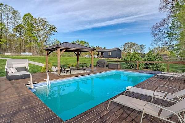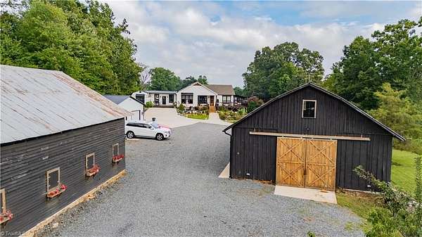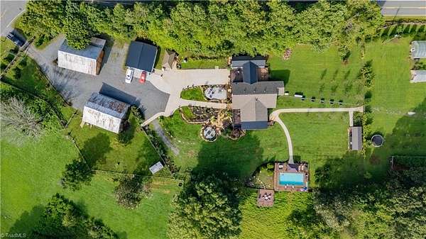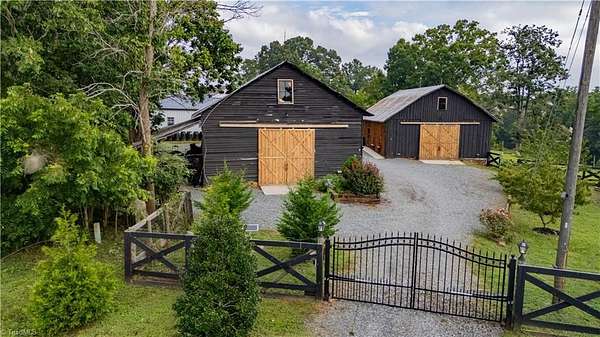 Experience refined comfort, thoughtful design, and exceptional outdoor living on this beautifully customized estate. The renovated kitchen features upgraded finishes, abundant cabinetry, and all appliances, including a new commercial refrigerator. The home offers two custom-built bunk rooms ideal for guests or large gatherings. Approximately 10 fenced acres provide privacy and versatility. Additional improvements include two large barns with concrete floors, a 30x30 wired garage/game room, and a detached bunkhouse or office with a half bath. Outdoor amenities include a covered porch, landscaped water feature, fully equipped outdoor kitchen, pool with deck, and separate fire pit area. Also included are two greenhouses, a mini orchard, chicken coop, bee hives, an old barn, and a Generac generator with a 300-gallon propane tank. Gated and shown by appointment only.