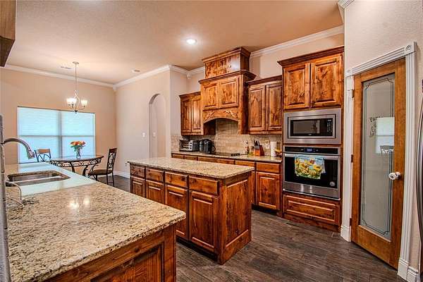 - Decorative Lighting, Eat-In Kitchen, Flat Screen Wiring, Granite Counters, Kitchen Island, Vaulted Ceiling(s)